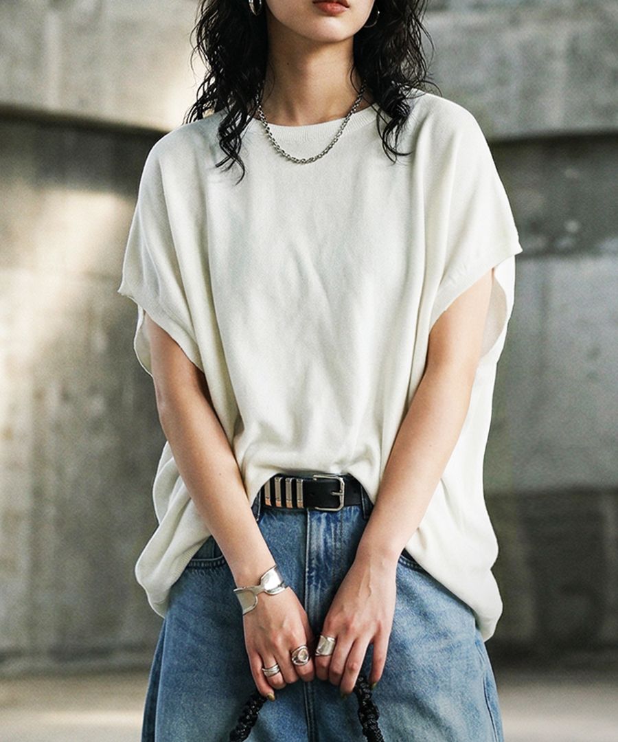 パンツやスカートはもちろん、ワイドパンツやデニムなど様々なボトムと相性がよく、カジュアルからきれいめまで幅広いスタイリングに活躍。