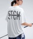 ロゴの中央に大胆なスリット風デザインが施された、遊び心溢れるTシャツ。