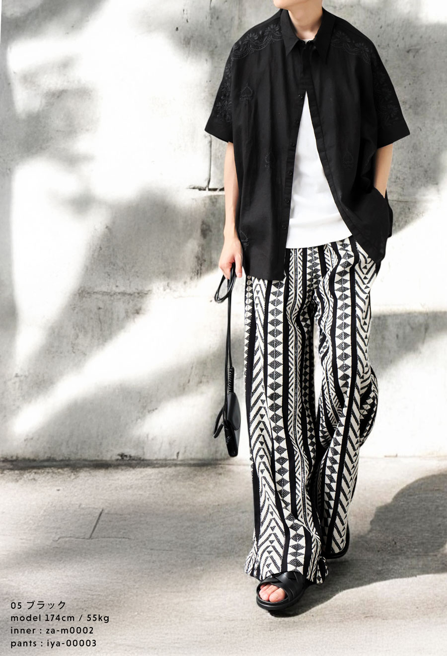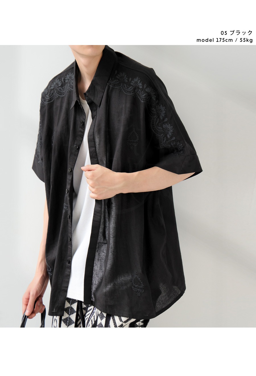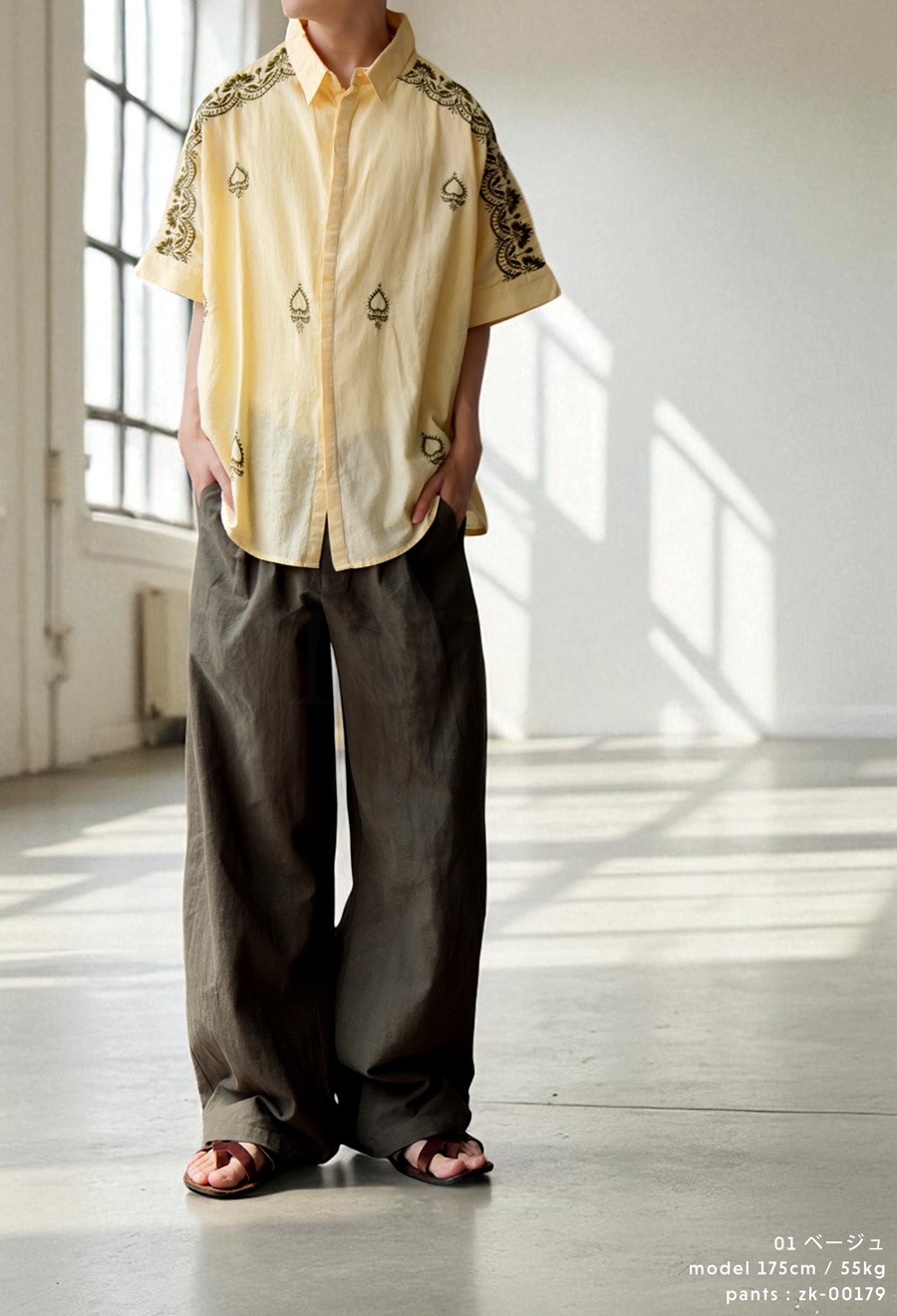 インド綿 刺繍シャツ メンズ トップス 半袖 送料無料・(500)メール便可