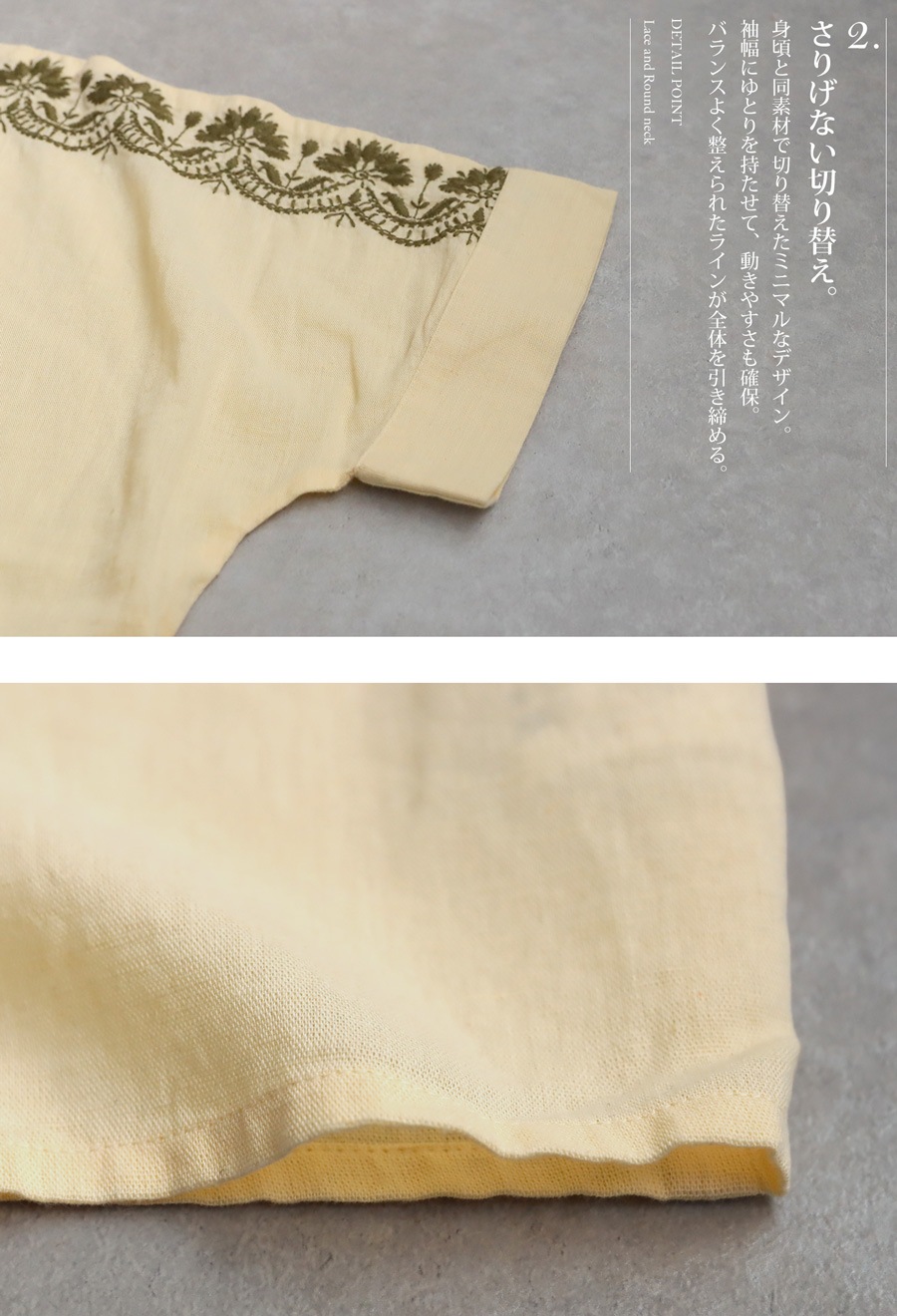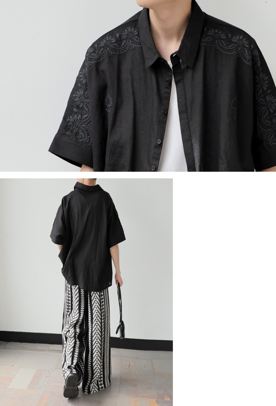 身頃には異なる2種類の刺繍を施し、立体感と深みのあるデザインで、シンプルながら個性が光る一着です。