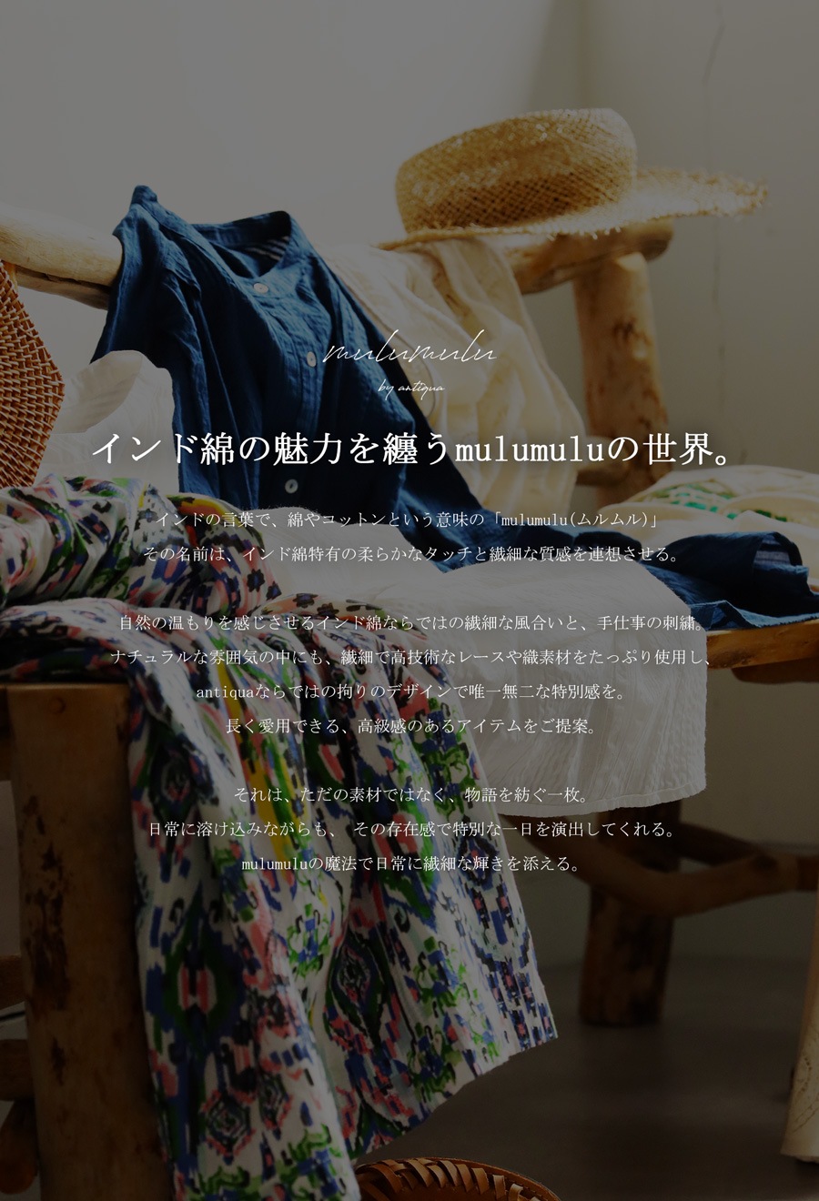 柔らかく軽やかなインド綿(綿・コットン・Cotton)を使用し、ナチュラルな風合いとやさしい肌ざわりを実現しました。