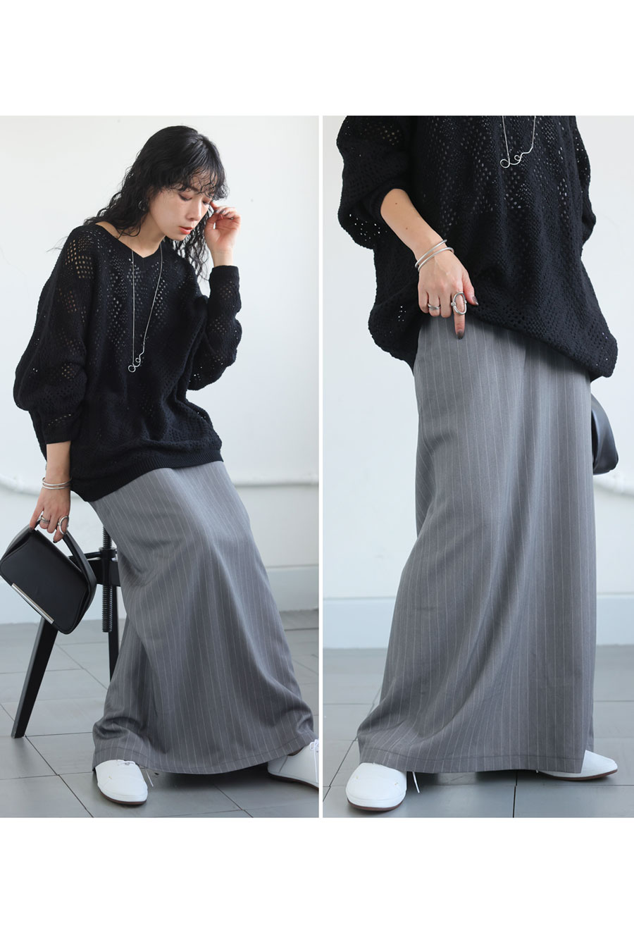 ストライプ柄 スカート レディース ボトムス ロング 送料無料・(100)メール便可
