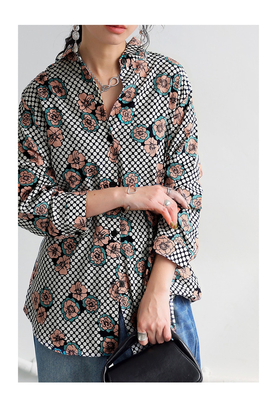 【検索ワード】レトロフラワーシャツ シャツ レディース トップス 長袖 レギュラーカラー レトロポップ モードスタイル 花柄 柄 レトロ 大人カジュアル 個性的 デザインシャツ ヴィンテージ感 デザインシャツ ブラウス 配色 シンプル おしゃれ きれいめ ゆったり オーバーサイズ 体型カバー 着痩せ カラフルコーデ ミックス マルチカラー antiqua アンティカ 大人 おしゃれ 10代 20代 30代 40代 50代 60代 春 夏 秋 冬 オールシーズン お洒落 カジュアル かわいい かっこいい あんてぃか