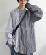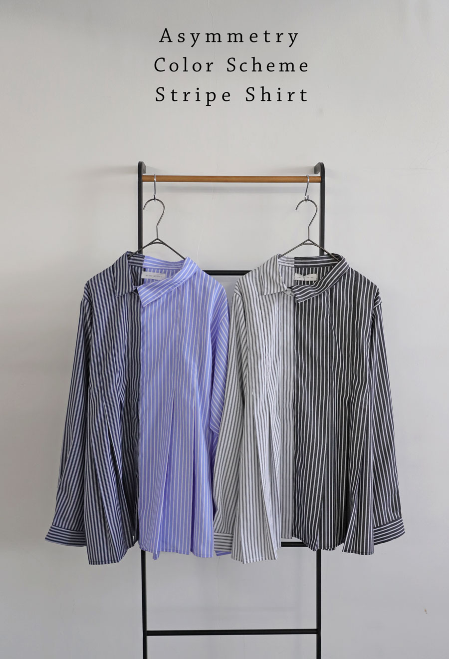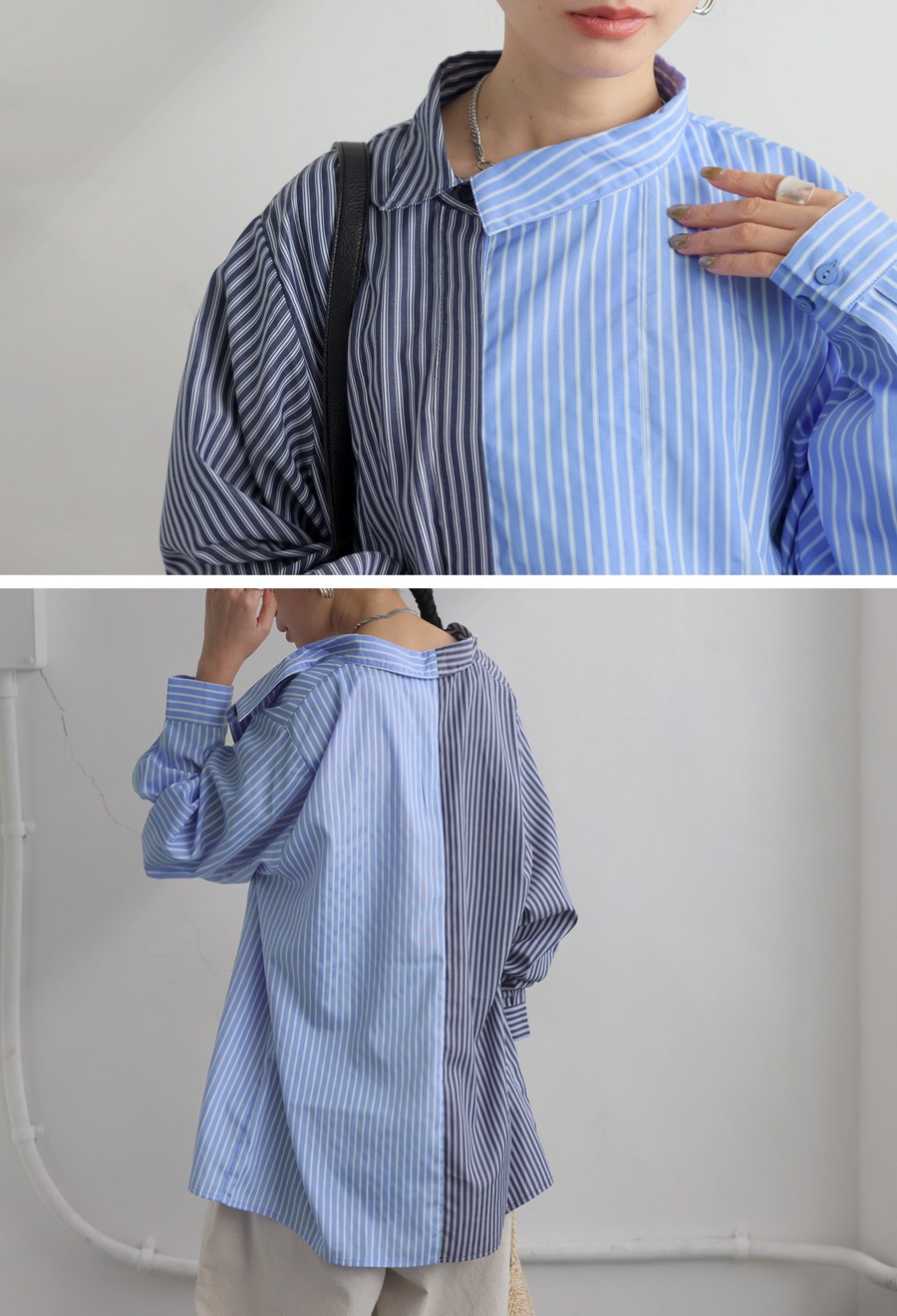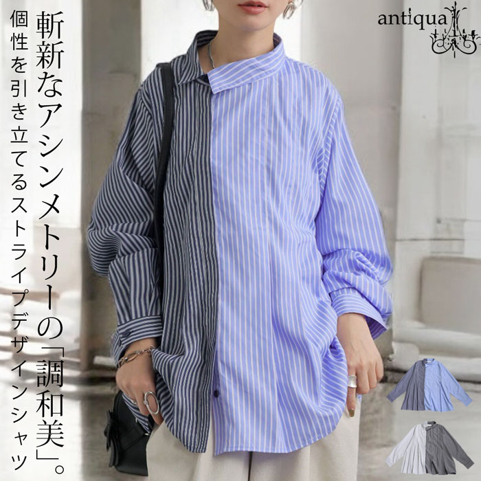 【検索ワード】アシメストライプシャツ シャツ レディース トップス 長袖 羽織り ストライプ柄 ストライプ 柄 前開き 比翼仕立て 配色 レギュラーネック アシメ襟 アシンメトリー 切り替え オーバーサイズ ゆったり タック 立体感 タック 微光沢 きちんと感 お手入れしやすい シンプル きれいめ 上品 体型カバー 細見え 華奢見え ハリ感 大きめ 大きいサイズ レイヤード 重ね着 ブラック 黒 ブルー 青 antiqua アンティカ 大人 おしゃれ 10代 20代 30代 40代 50代 60代 春 秋 冬 お洒落 カジュアル かわいい かっこいい あんてぃか
