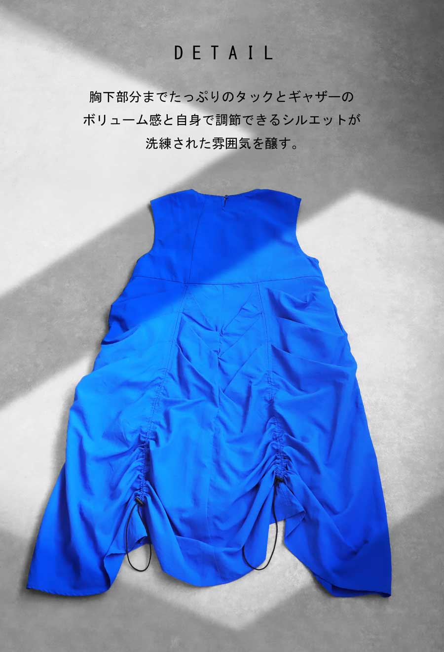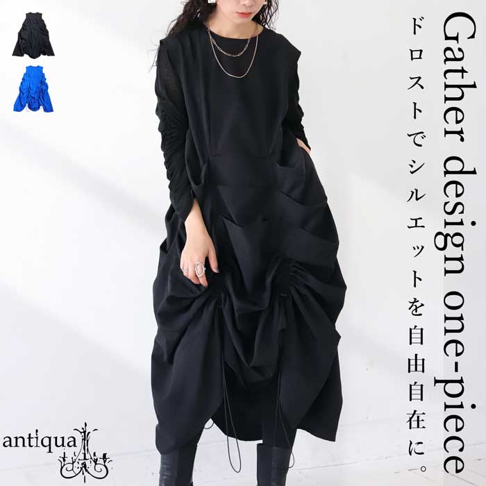 【検索ワード】ギャザーワンピ ワンピース レディース ロング ロングワンピース ノースリーブ プルオーバー かぶり バック 涙開き タック ドロスト ドローコード ドローストリング ギャザー 無地 丸首 クルーネック ボリューム ポケット付き ゆったり モード モダン ドレッシー 個性派 体型カバー 細見え 着痩せ 大きめ デザインワンピース antiqua アンティカ 大人 おしゃれ 10代 20代 30代 40代 50代 60代 春 夏 お洒落 カジュアル かわいい かっこいい あんてぃか