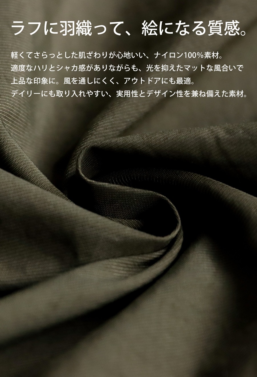 素材には軽量でタフなナイロン100%を採用。