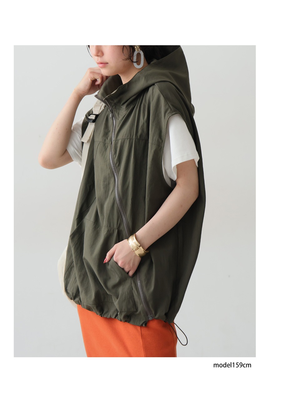 アシンメトリージップベスト レディース フード付き 送料無料・再入荷 メール便不可