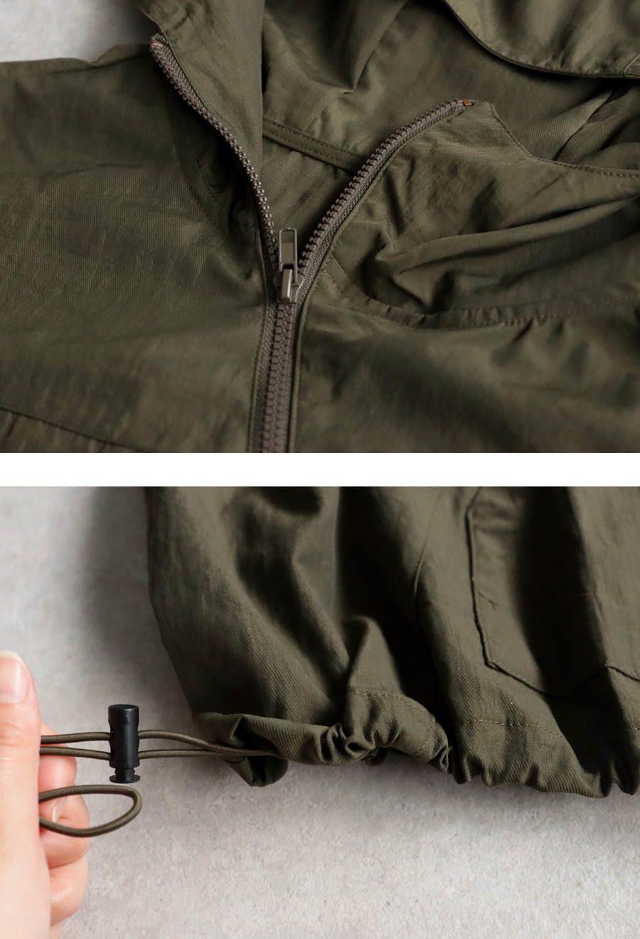 裾にはドローコードが付き、シルエット調整も自由自在。
