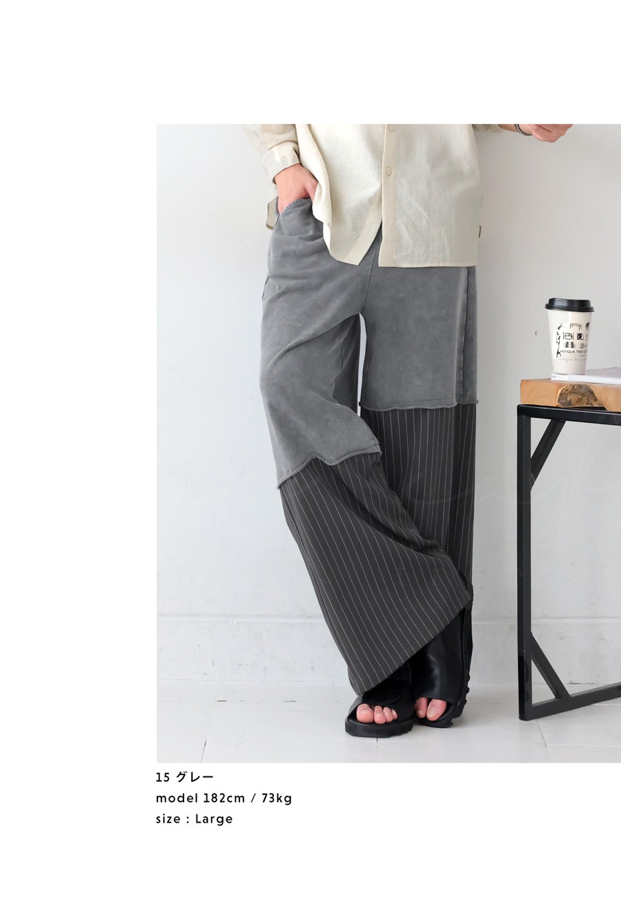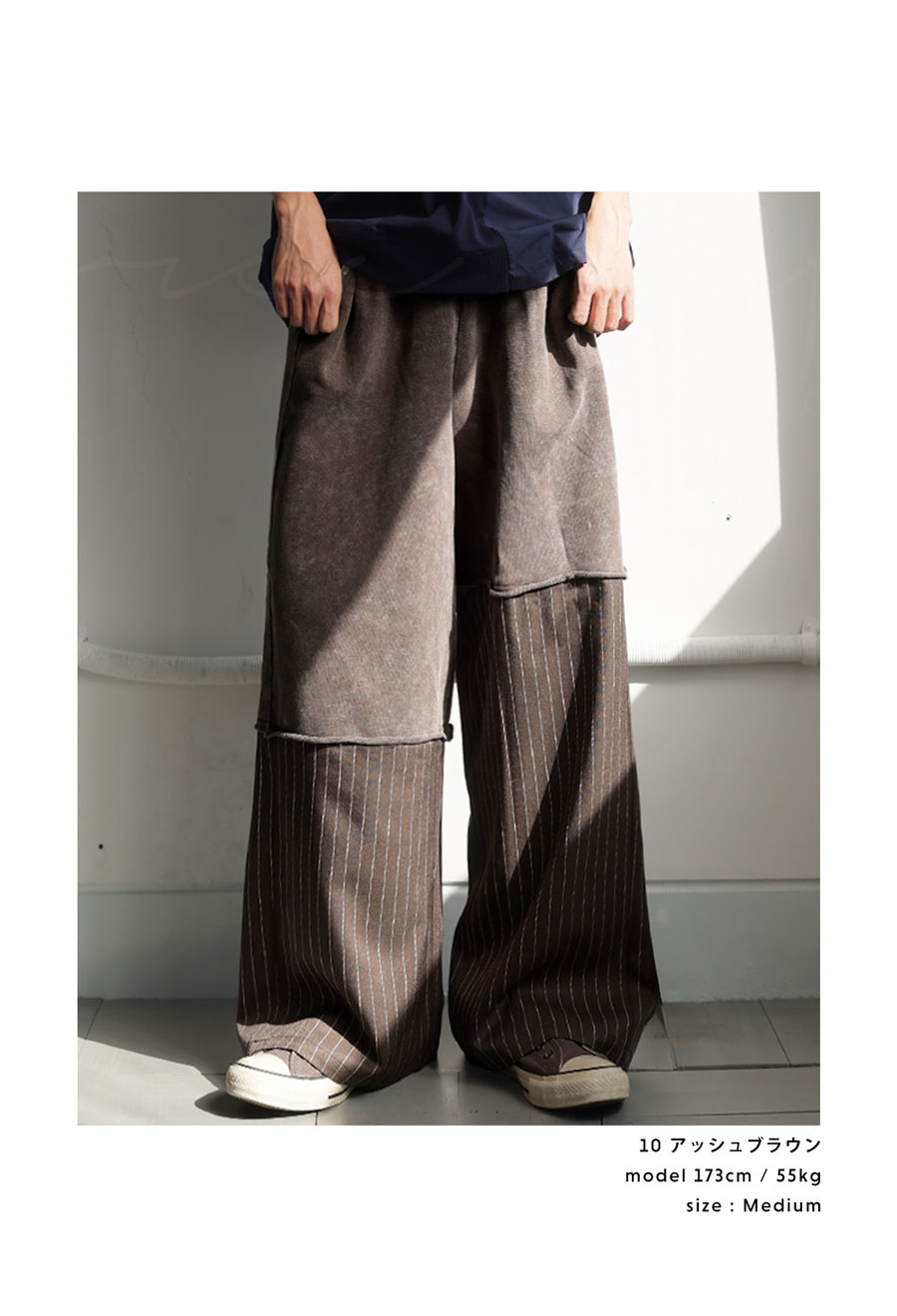 【検索ワード】柄切替パンツ メンズ ボトムス ドッキング パンツ ロングパンツ 長ズボン 柄切り替え ストライプ柄 ワイドストレートシルエット 柄 ポケット付き ミニ裏毛 布帛 イージーパンツ 後ろゴム サイズ展開 Medium Large アシメ アシンメトリー 異素材 ゆったり ヴィンテージ感 シンプル モード ユニセックス 男性 男 かっこいい カッコイイ カジュアル antiqua treecafe アンティカ ツリーカフェ メンズファッション トレンド コーディネート 通販 ブランド 春 夏 秋 冬 オールシーズン あんてぃか