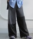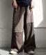 異素材の組み合わせ×ワイドストレートでトレンドを抑えたこなれパンツ。