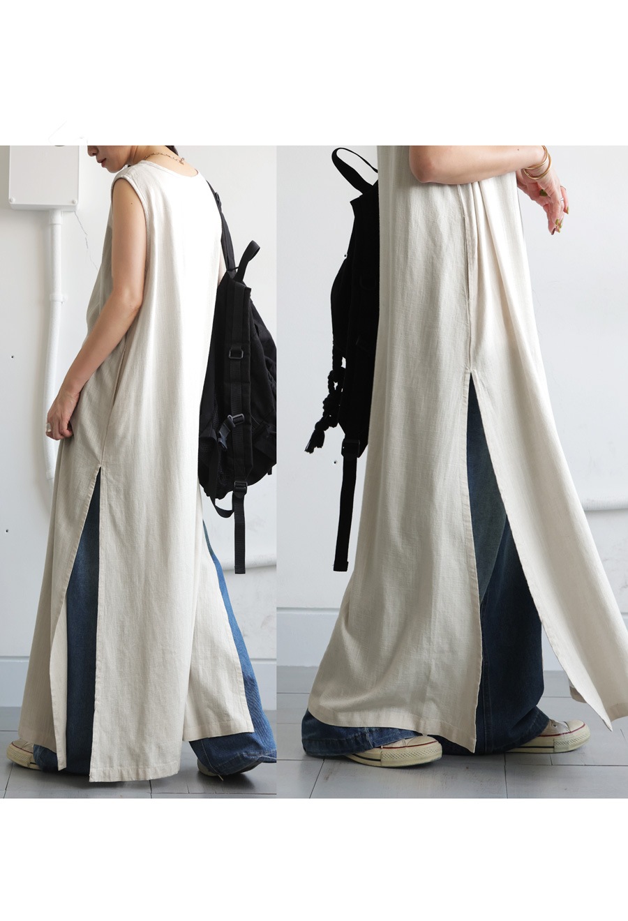 動くたびに揺れる深めのサイドスリットが印象的で、レイヤードスタイルを楽しめるデザインです。