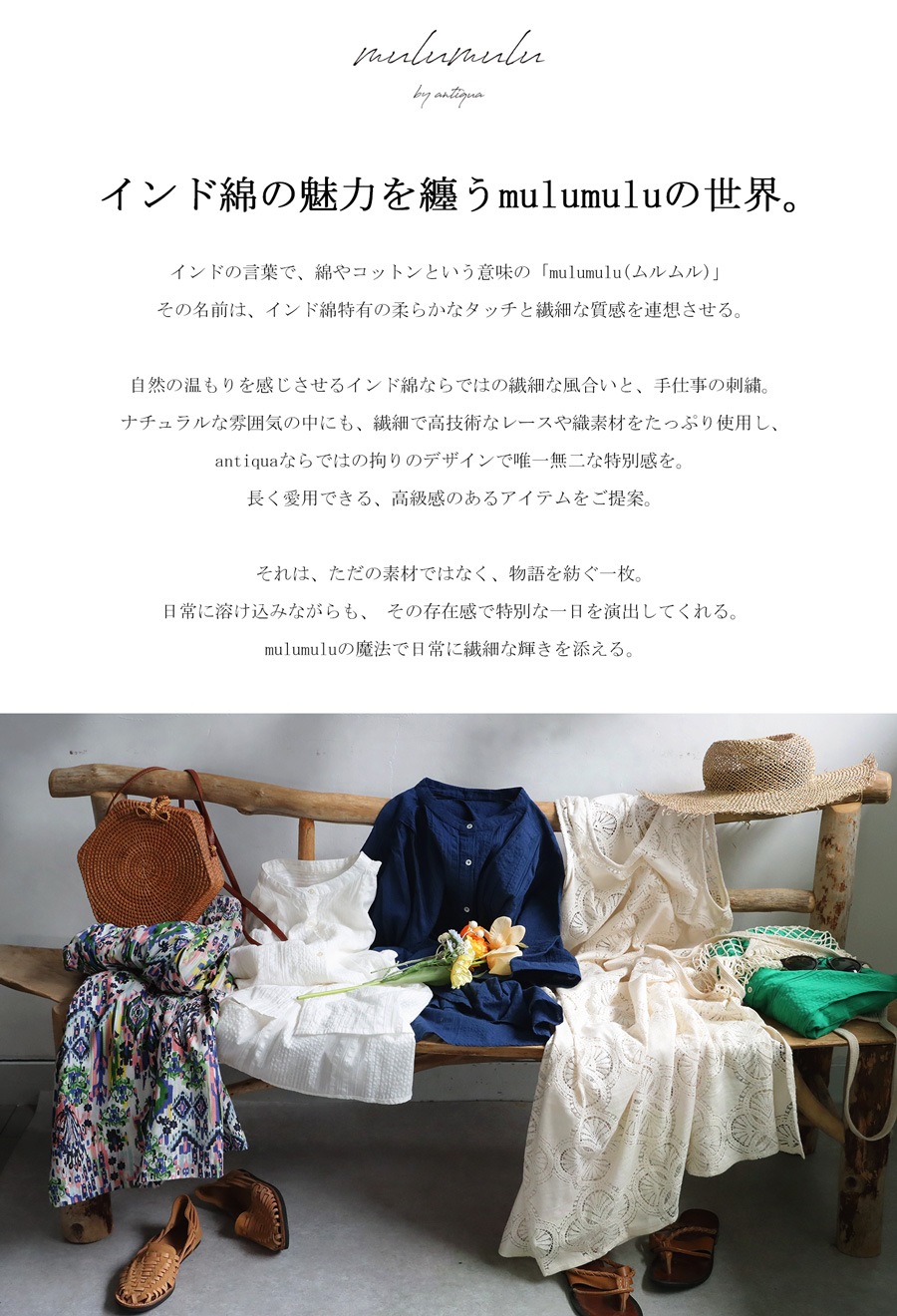インド綿ならではの繊細な風合い、手仕事の刺繍にフォーカスを当てたantiqua発のブランド『mulumulu(ムルムル)』