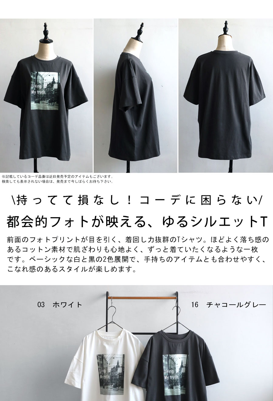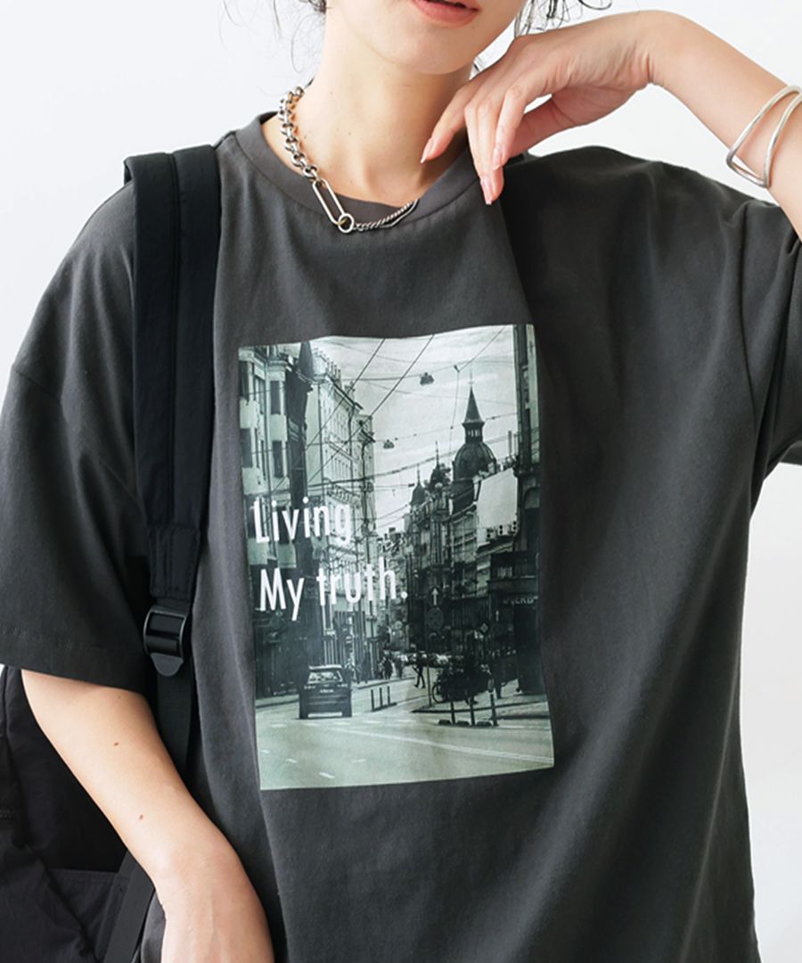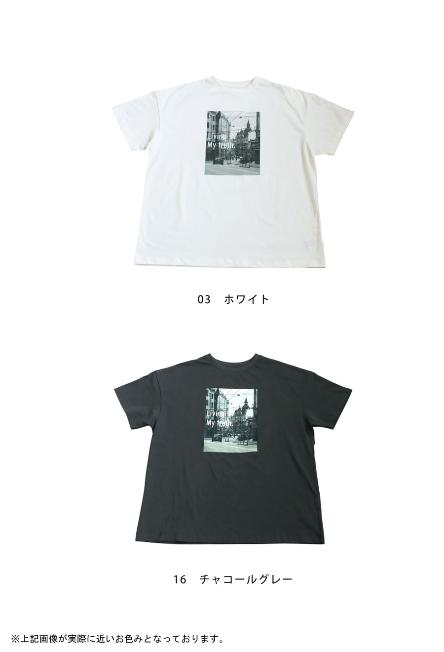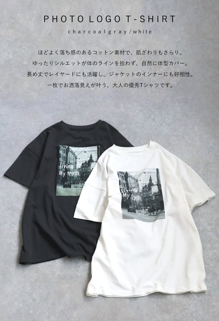 【検索ワード】フォトロゴT Tシャツ レディース トップス 半袖 プリント 街 無地 カットソー クルーネック 丸首 綿100 綿 コットン フォト ヴィンテージ感 レトロ 古着風 ゆったり シンプル プルオーバー かぶり 通気性 吸湿性 きれいめ デザインTシャツ ロングTシャツ ロゴT 街並み 写真 英字 写真 プルオーバー かぶり オフホワイト 白 チャコールグレー antiqua アンティカ 大人 おしゃれ 10代 20代 30代 40代 50代 60代 春 夏 お洒落 カジュアル かわいい かっこいい あんてぃか
