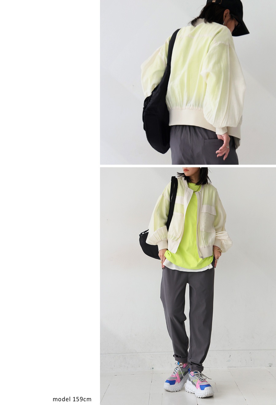 トレンド感のあるシアーな素材がコーデを彩るブルゾン。