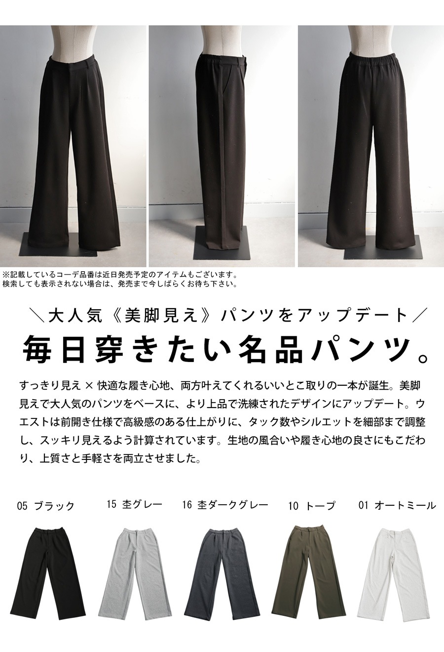 【検索ワード】ポンチタックパンツ パンツ レディース ボトムス ロング 無地 シンプル きれいめ 高級感 上品 タックパンツ タック テーパード ワイドライン ポンチ素材 ハリ感 シワになりにくい 長ズボン スラックス ゆったり ベルトループ 伸縮 ストレッチ 後ろゴム ポケット付き 美脚 通勤 オフィス オケージョン サイズ展開 Medium Large 綿 コットン オートミール ブラック 黒 トープ 杢グレー グレー 杢ダークグレー ダークグレー antiqua アンティカ 大人 おしゃれ 10代 20代 30代 40代 50代 60代 春 夏 秋 冬 オールシーズン お洒落 カジュアル かわいい かっこいい あんてぃか