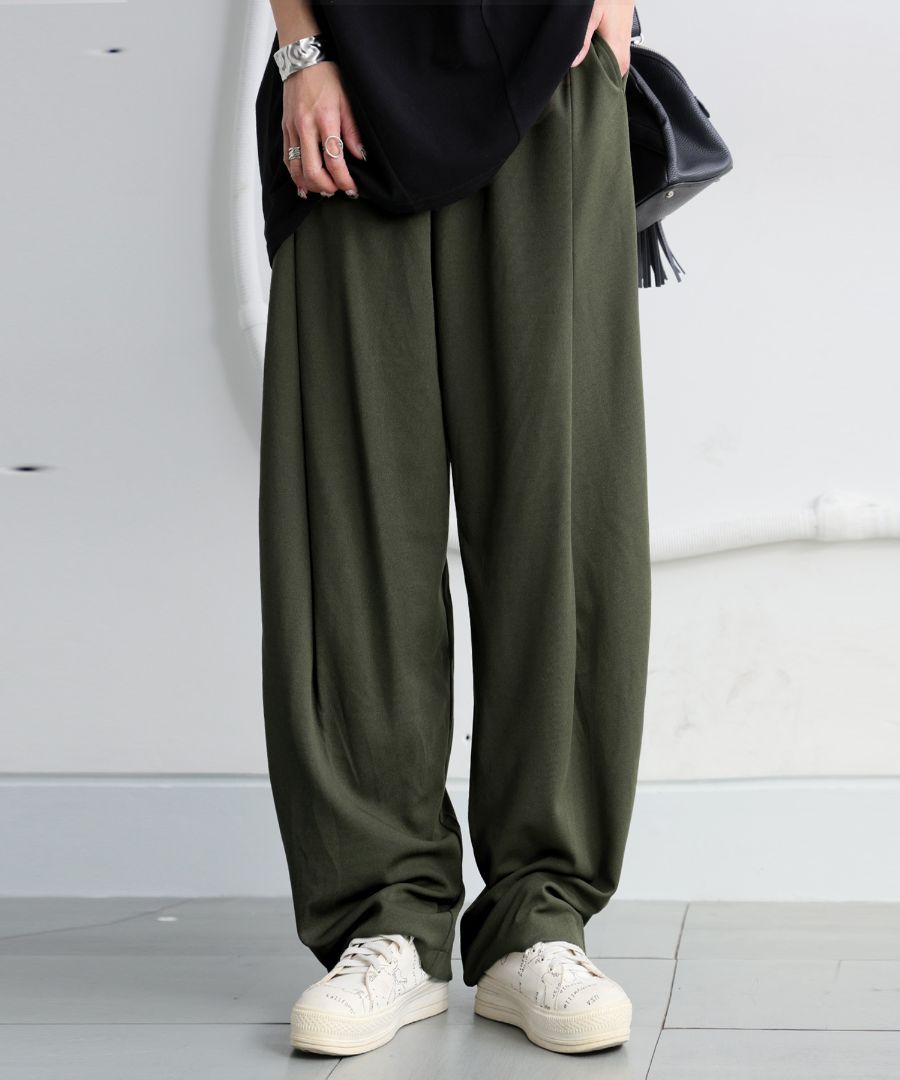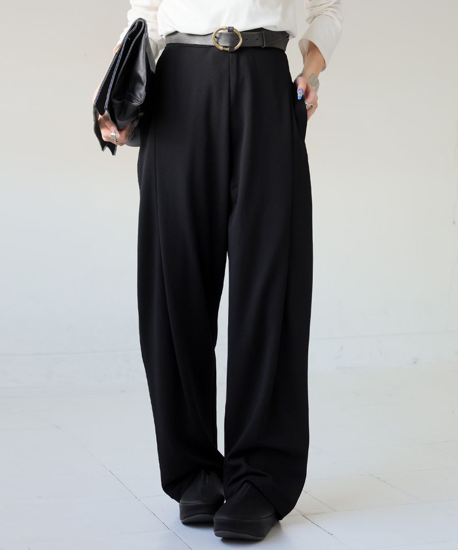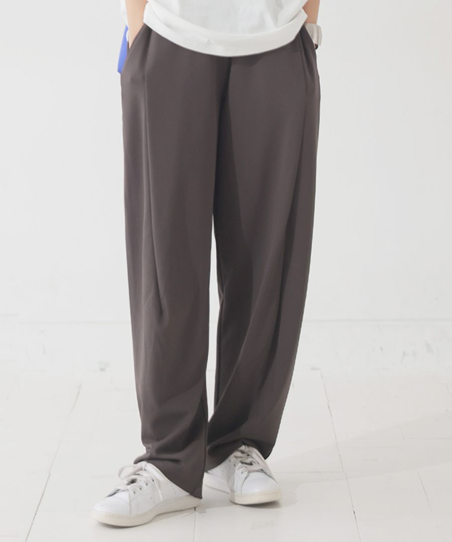 こだわりの長めのタックがスタイルアップを叶えるテーパードパンツ。