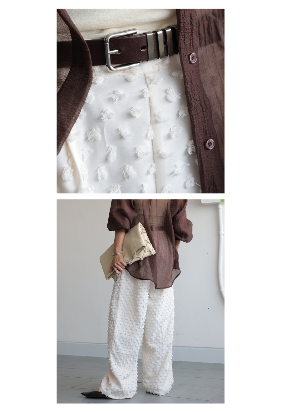 存在感と着やすさを兼ね備えた、立体フリンジが印象的なドビー素材のストレートパンツが登場しました。