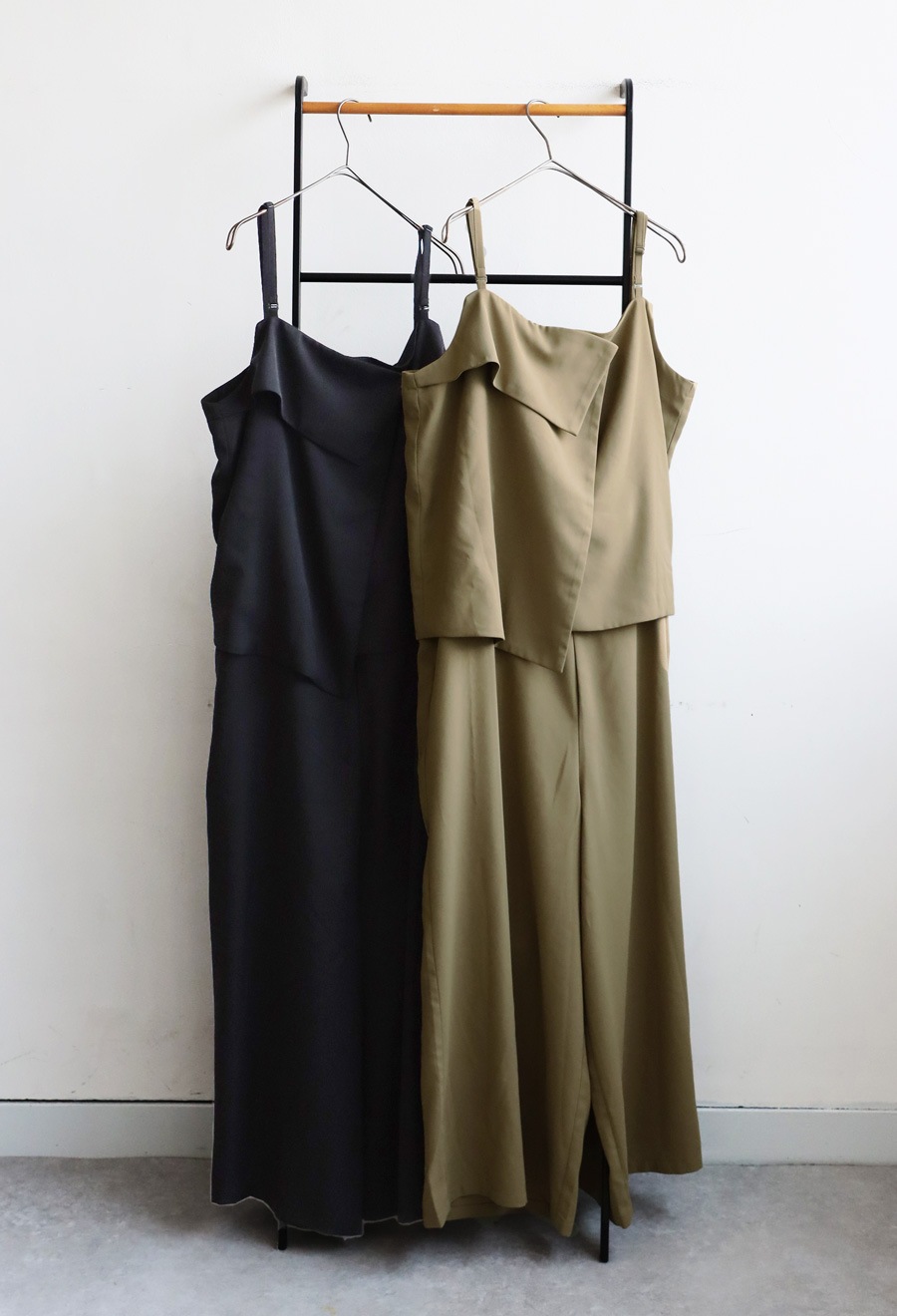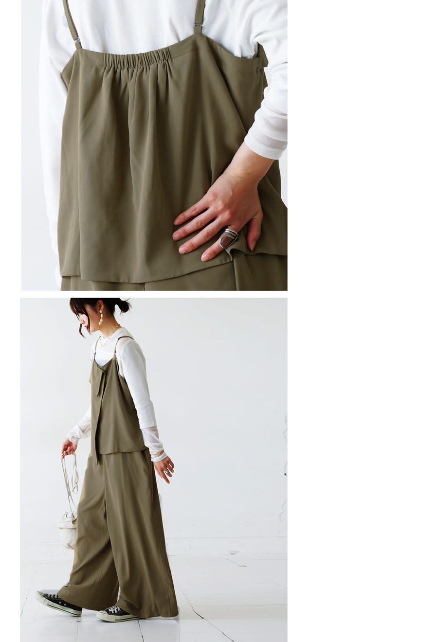 まるでトップスを重ねたようなデザインが印象的で、着るだけでスタイリングが完成します。