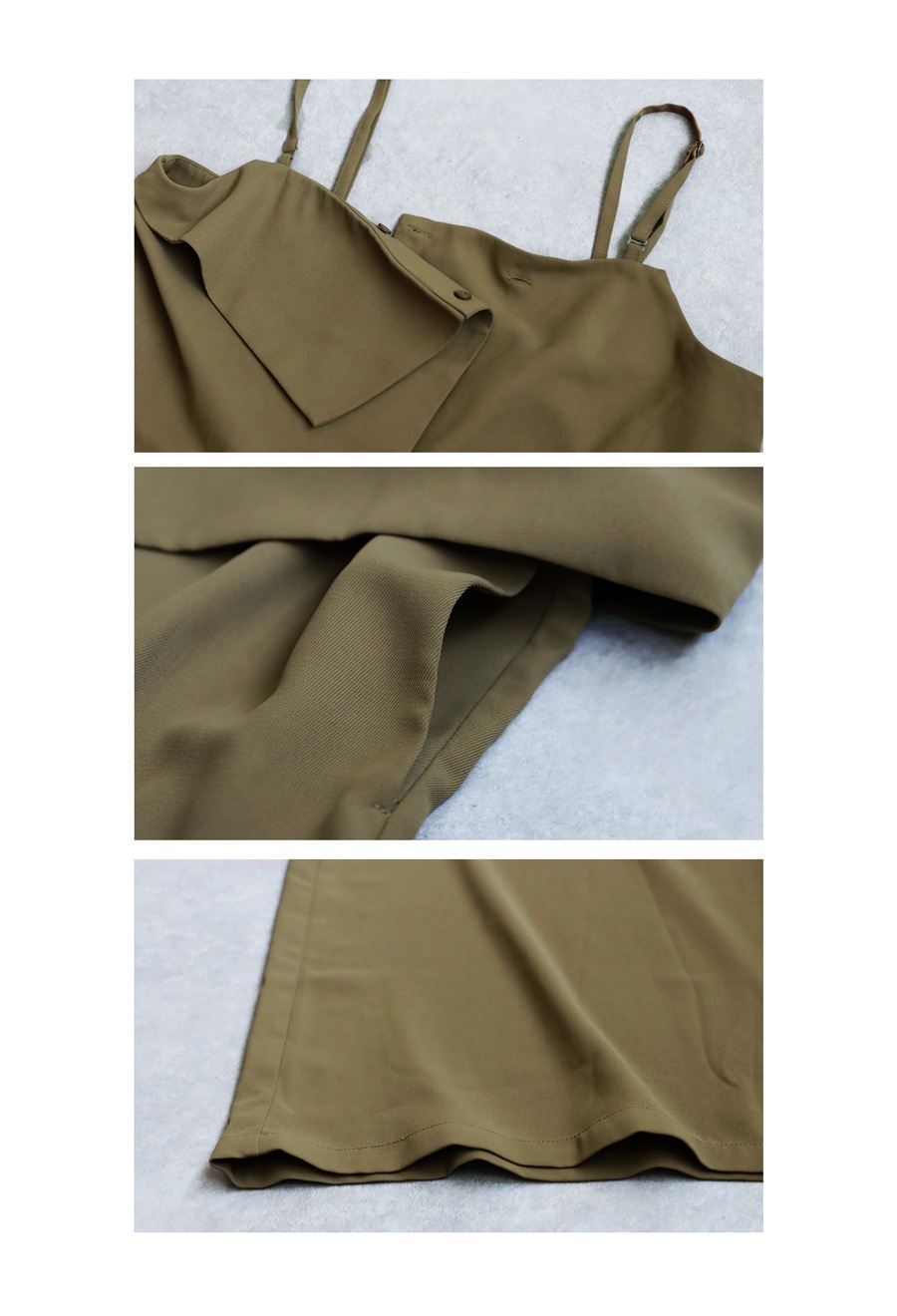 肩紐は華奢なラインで女性らしさを引き立て、Tシャツやブラウスとのレイヤードもすっきり決まります。