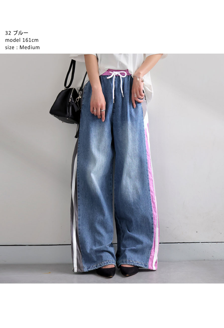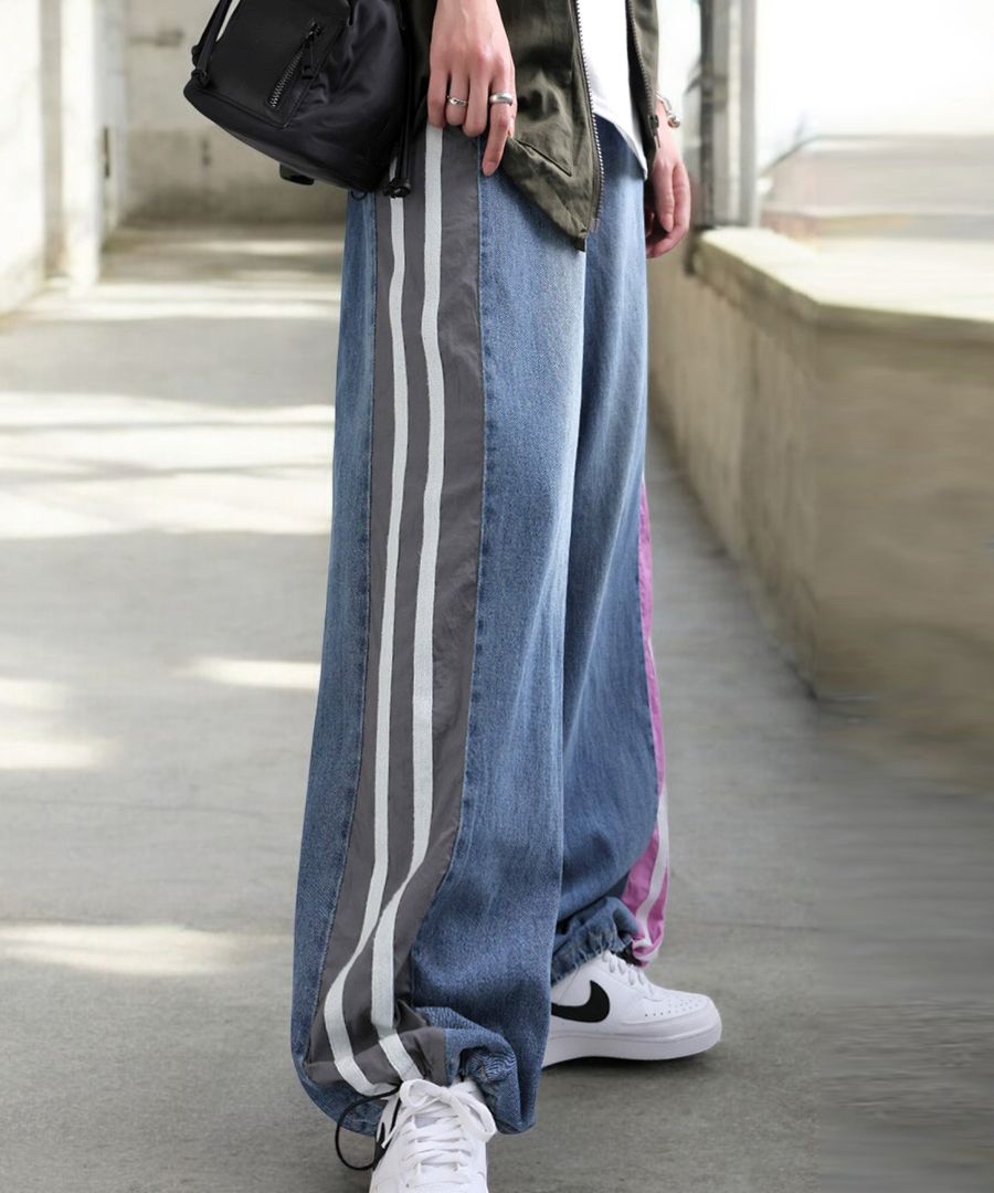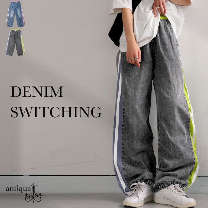 切替ラインデニムパンツ レディース ワイドシルエット 送料無料・メール便不可