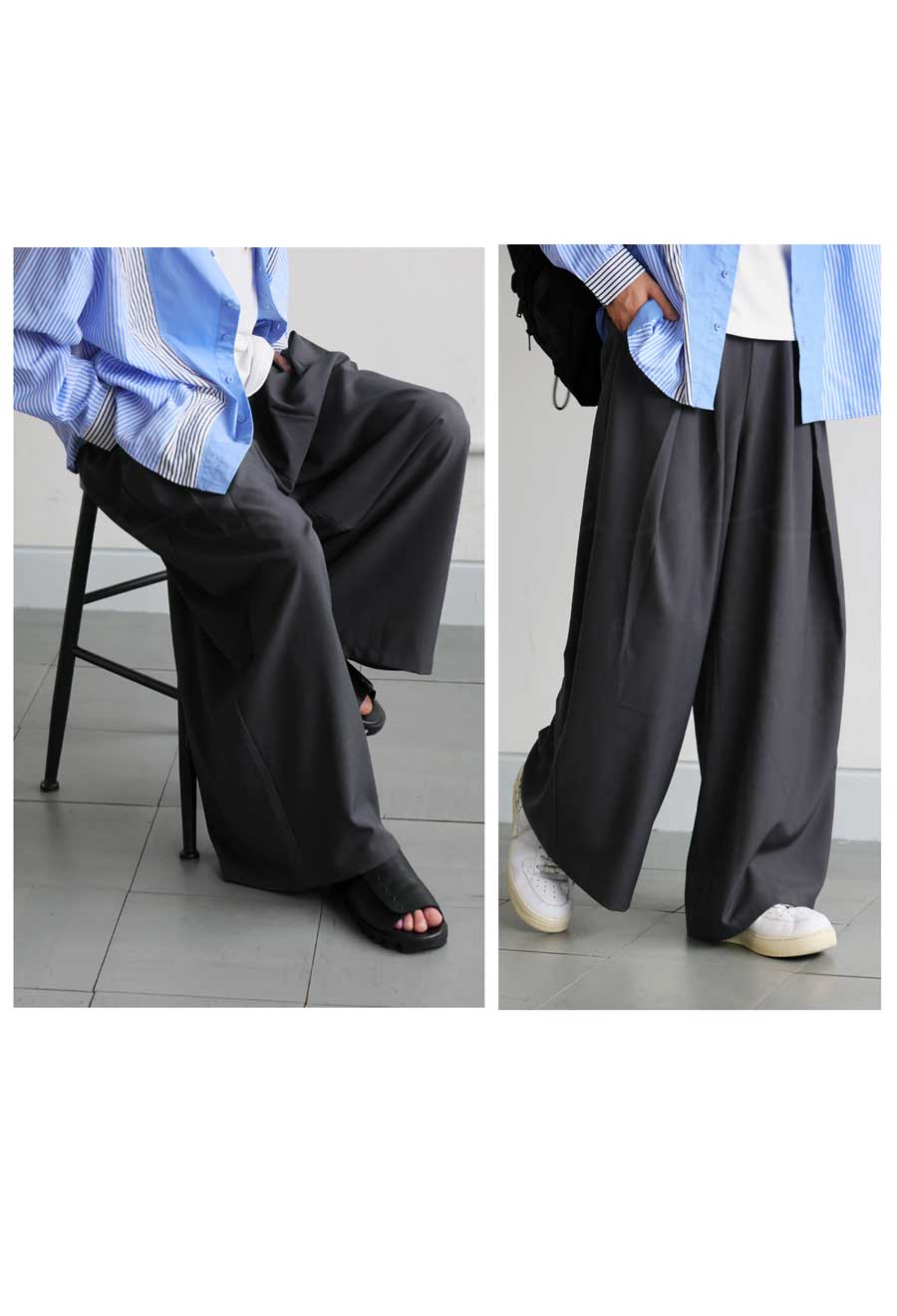 【検索ワード】 タックワイドパンツ パンツ メンズ ボトムス ロング 長ズボン 無地 ワイドパンツ ワイドシルエット タックパンツ タック 立体的 セットアップ ポケット付き ベルトループ 落ち感 美シルエット 脚長 美脚 フロントタック ラインを拾わない ウエストゴム 前フラット 後ろゴム ゆったり シンプル きれいめ 上品 モード スタイリッシュ エフォートレス 体型カバー 細見え 着痩せ 大きめ 大きいサイズ デザインパンツ ロングパンツ ブラック オケージョン オンオフ 着回し オフィスカジュアル 黒 グレー サイズ展開 Medium Large ユニセックス 男性 男 かっこいい カッコイイ カジュアル antiqua treecafe アンティカ ツリーカフェ メンズファッション トレンド コーディネート 通販 ブランド 春 夏 秋 冬 オールシーズン あんてぃか