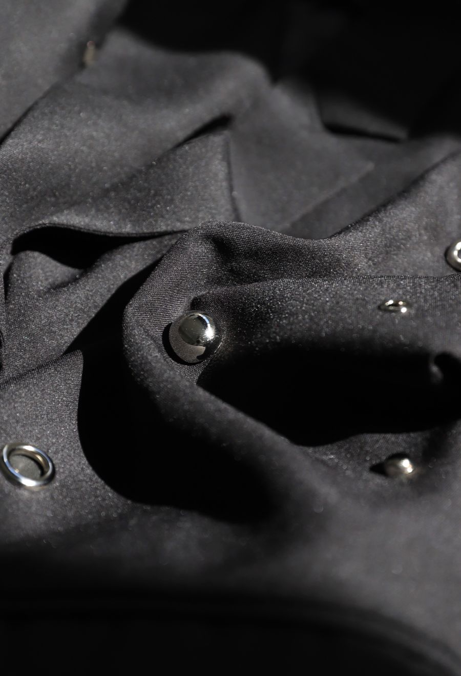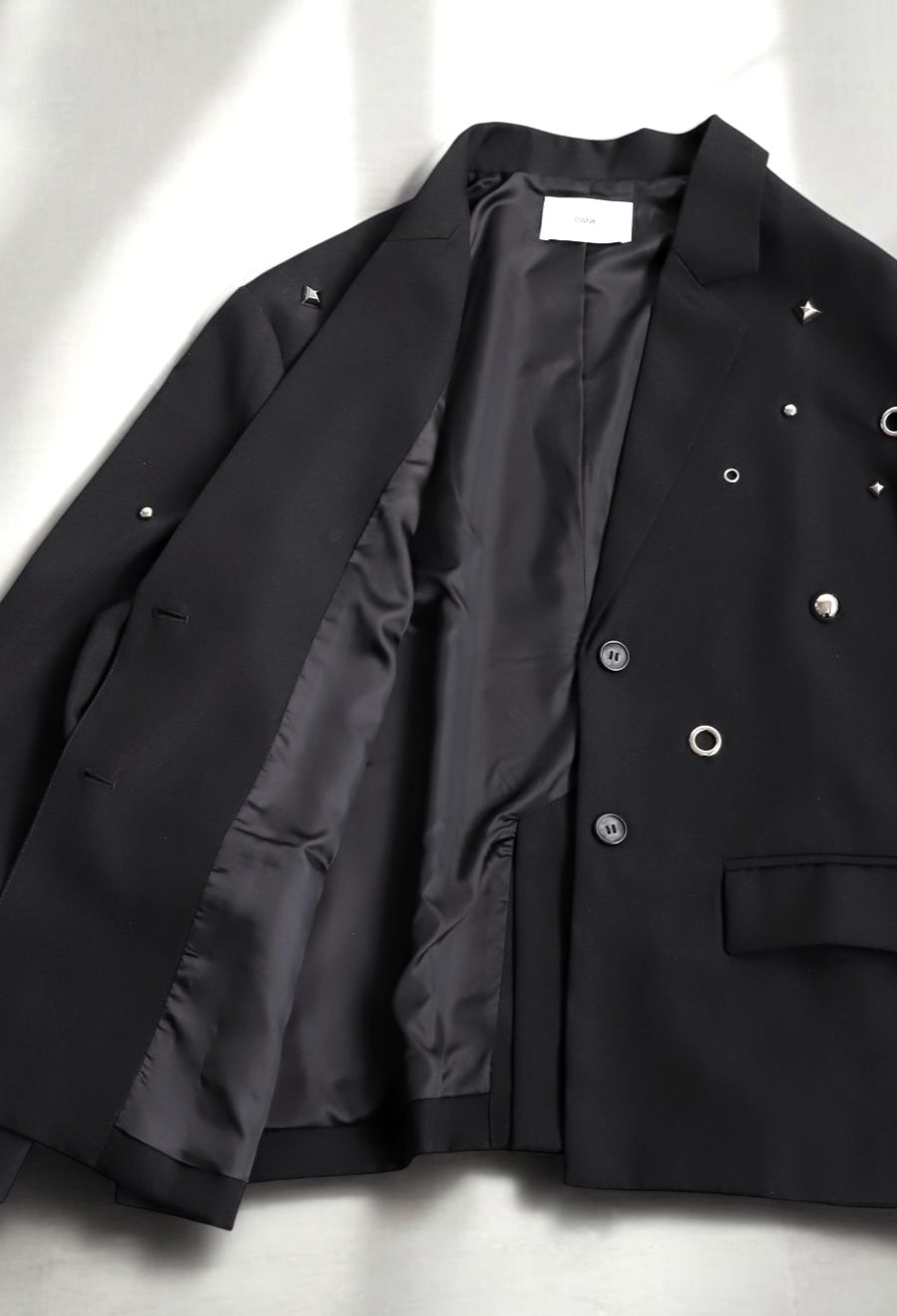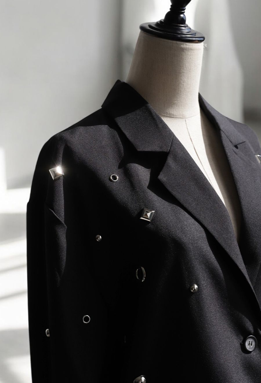 大小さまざまなスタッズやビジュー、ハトメをあしらい、光沢感が上品に煌めきます。
