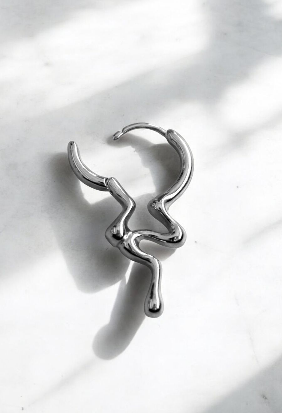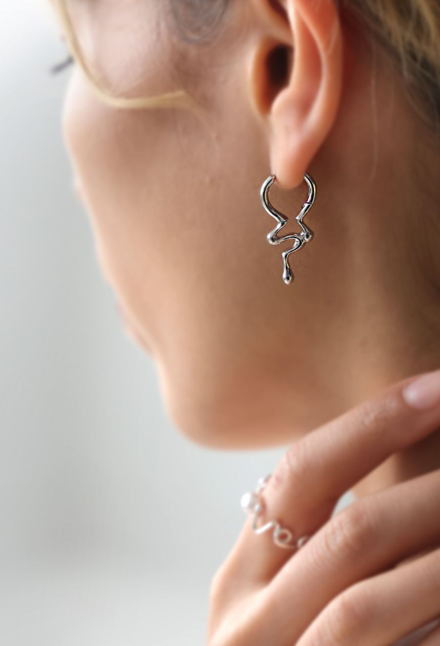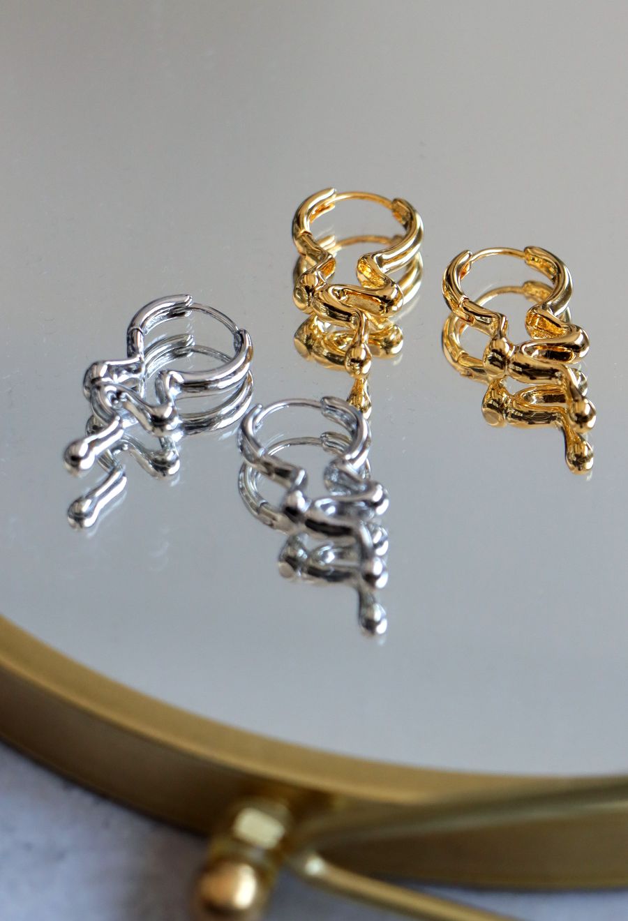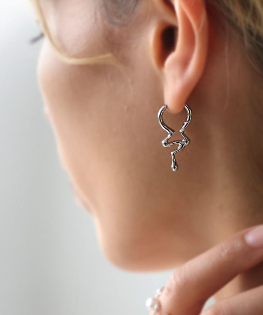とろけるようなドロップモチーフが目を惹く、アート感漂うメタルピアス。
