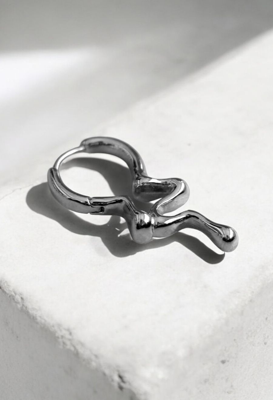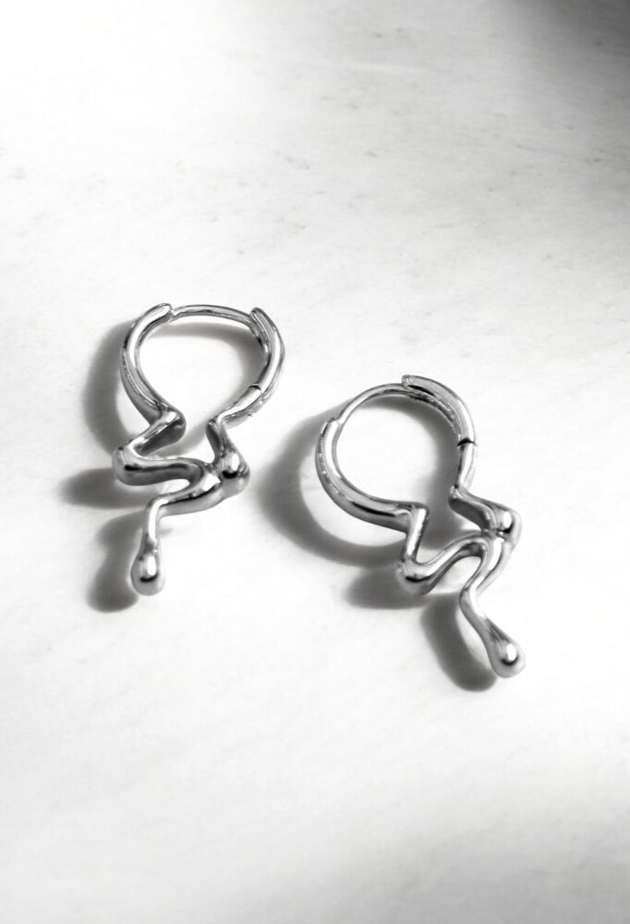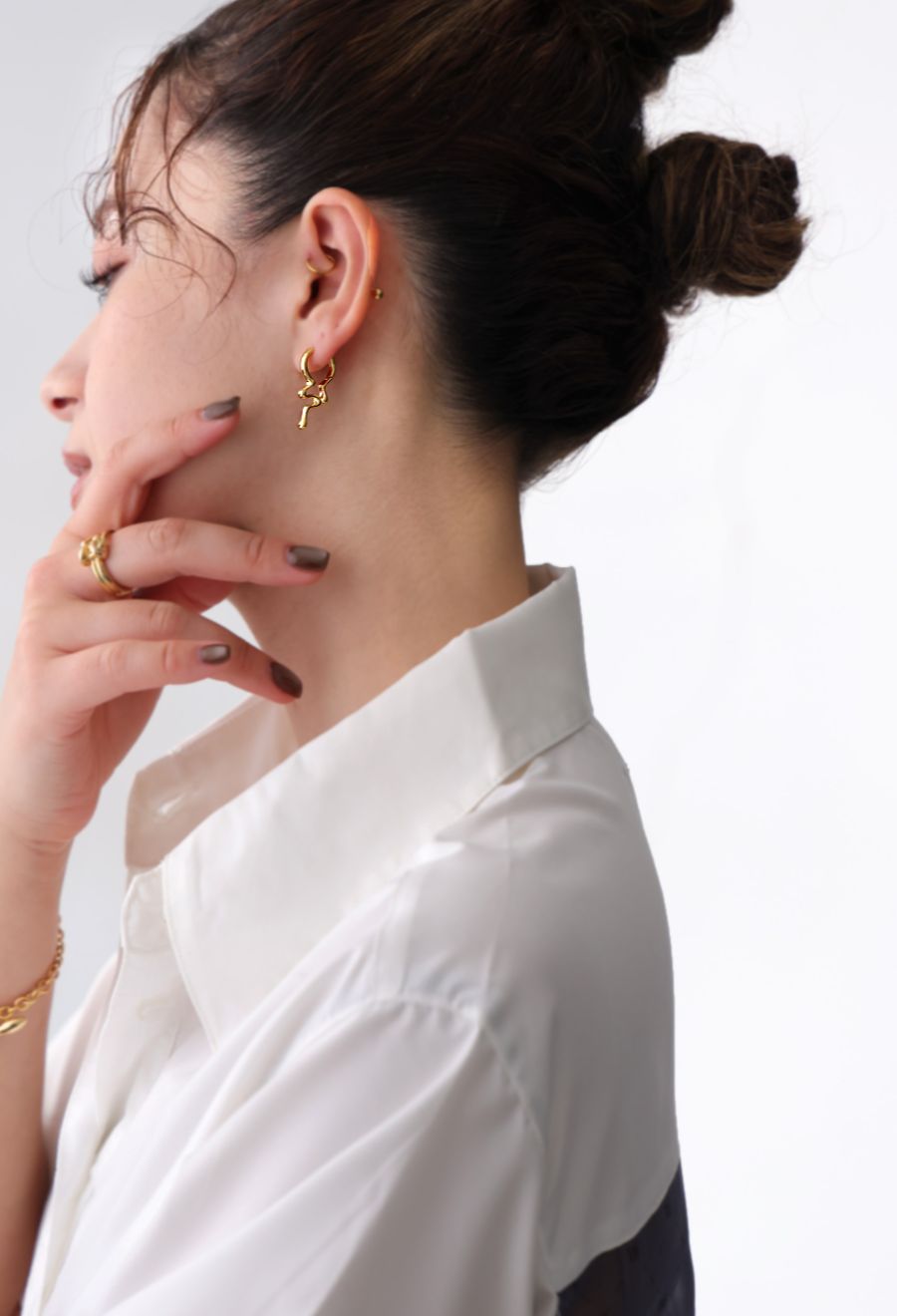 とろけるようなドロップモチーフが目を惹く、アート感漂うメタルピアス。