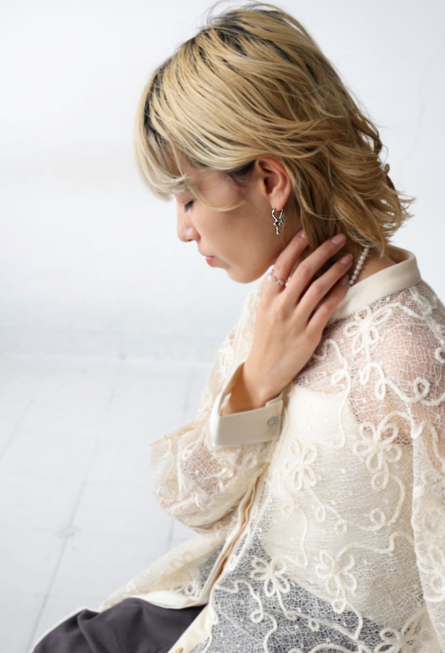立体的なフォルムと滑らかな光沢が耳元にさりげない存在感を与え、個性を引き立てます。