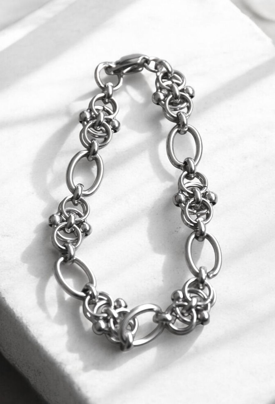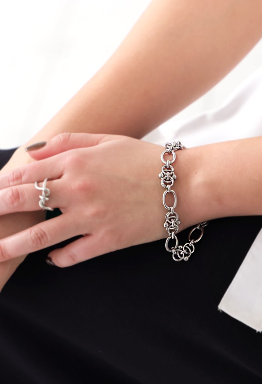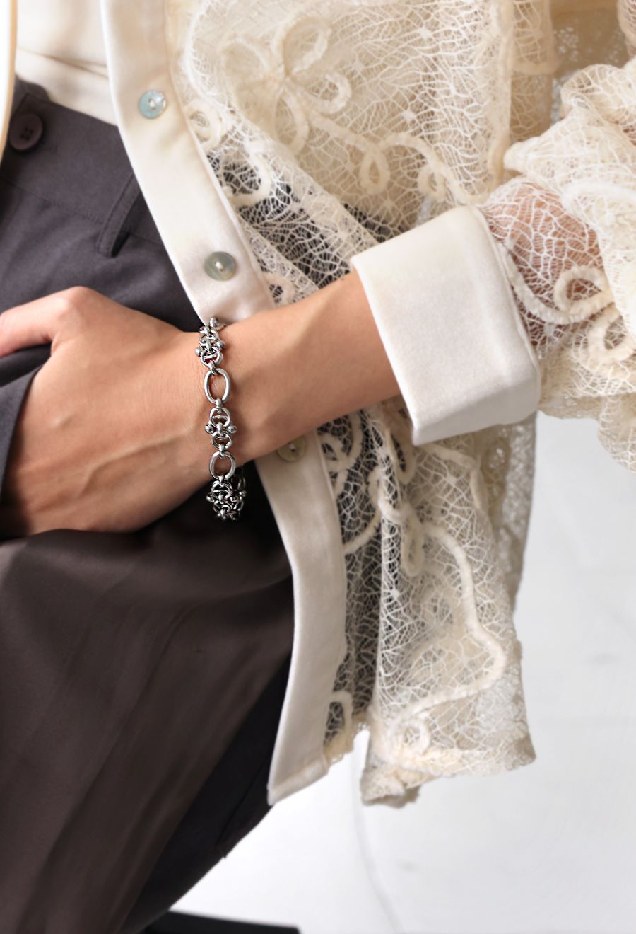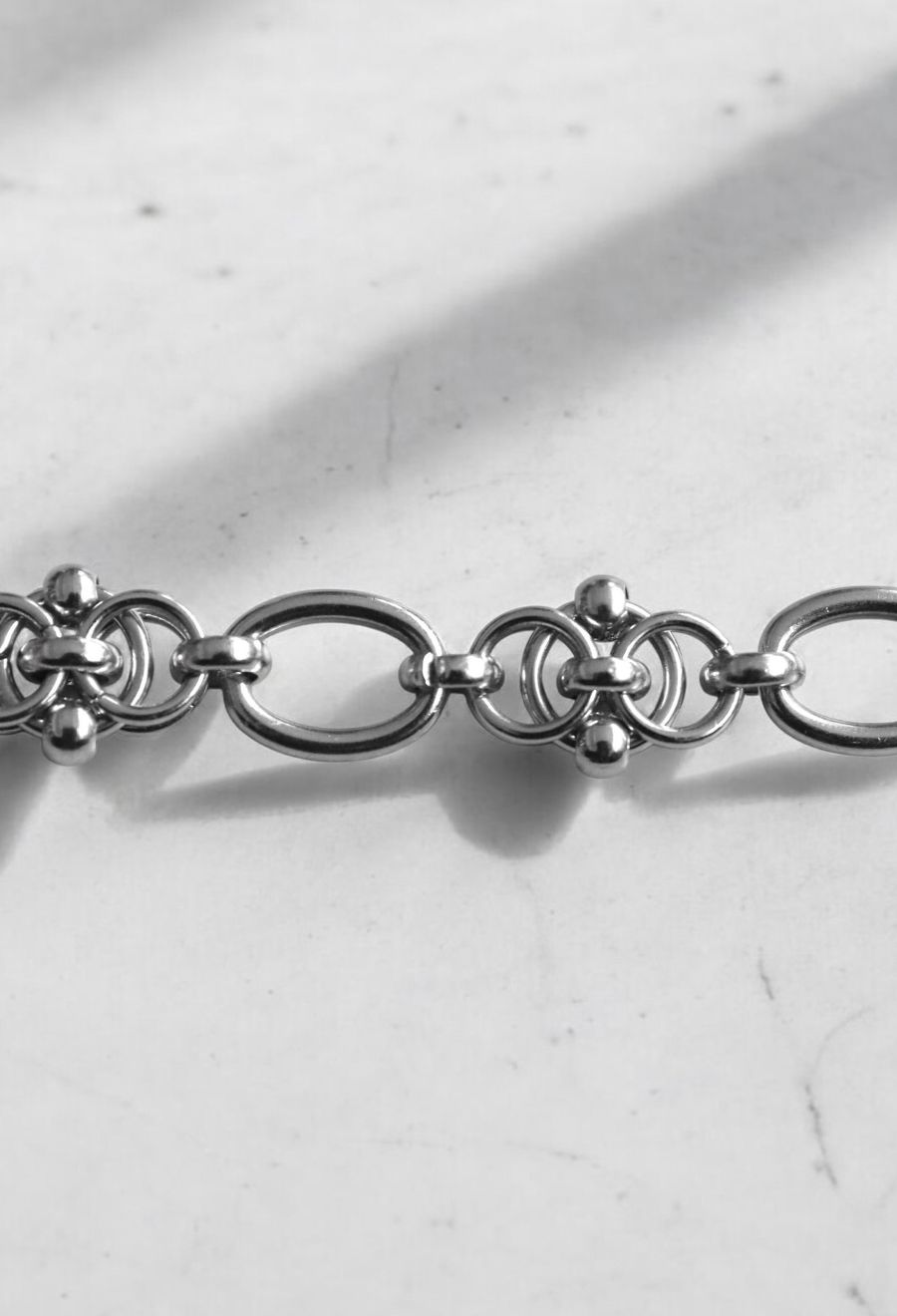 モダンな雰囲気を纏ったチェーンブレスレットは、手元にしっかりと存在感を添えてくれるアイテムです。