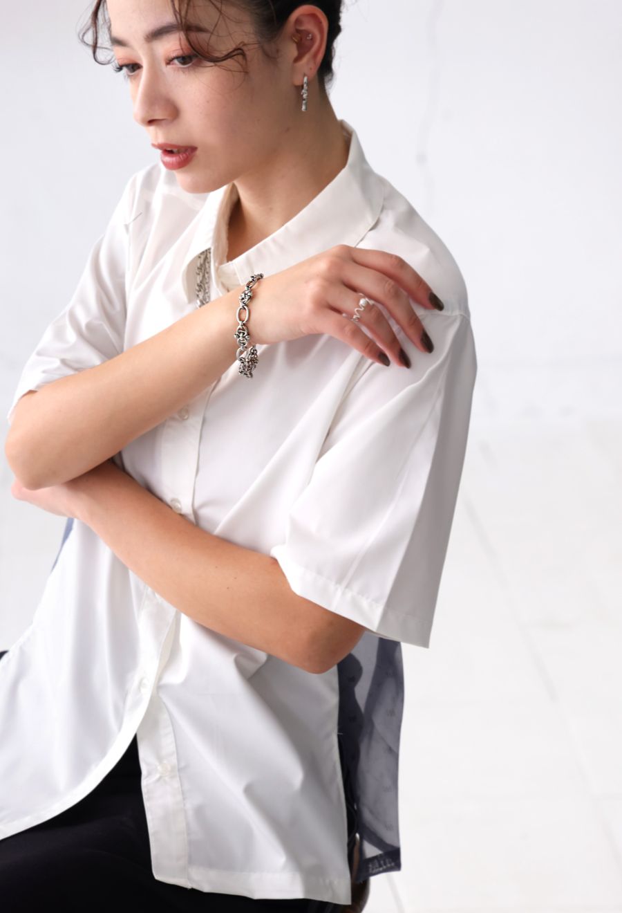 大ぶりのチェーンが連なった形状は、カジュアルスタイルにはもちろん、モードなコーデにもなじみます。