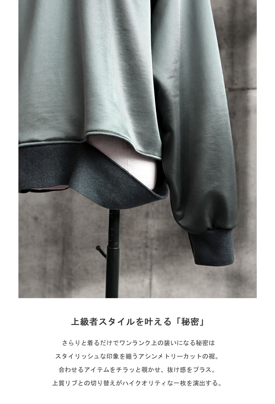 品を纏う『サテン裏毛デザイントップス』