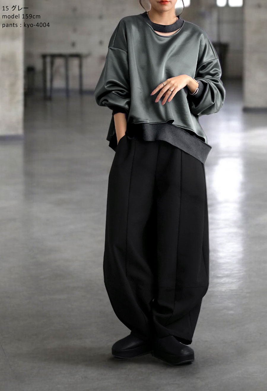 【検索ワード】サテン裏毛デザイントップス トレーナー レディース トップス 長袖 裏毛トップス 丸首 クルーネック 変形 ドロップショルダー 抜け感 アレンジ 綿 コットン 綿混 光沢 リブ アシメカット アシメ カットデザイン ゆったり サテン シンプル 大人カジュアル 体型カバー こなれ感 トレンドアイテム 高見え デイリーウェア 人気アイテム 重ね着 レイヤード 普段使い お出かけコーデ ブラック 黒 グレー KYO 今日という日 キョウ きょうというひ 最高の自分 上質 豊か ライフスタイル 大切 特別な瞬間 特別 スペシャル こだわり 都会的 先進的 モダン antiqua アンティカ 大人 おしゃれ 10代 20代 30代 40代 50代 60代 春 秋 冬 お洒落 かっこいい あんてぃか