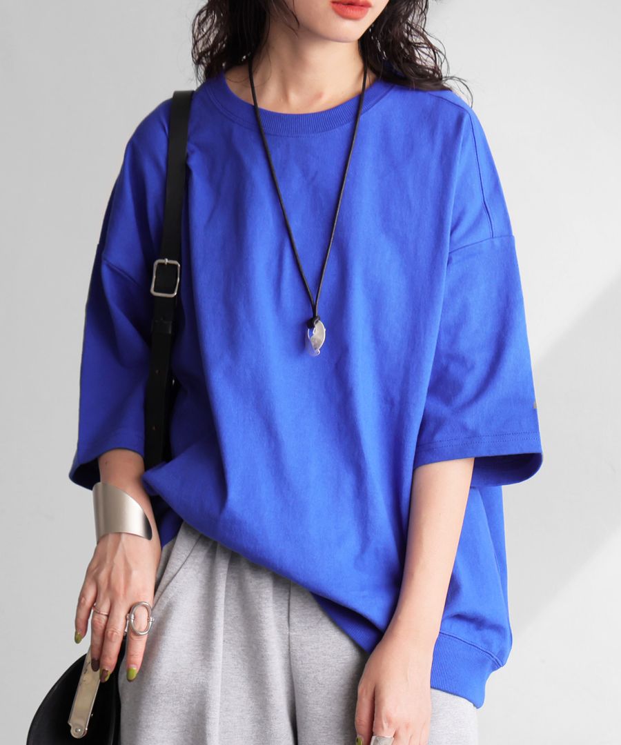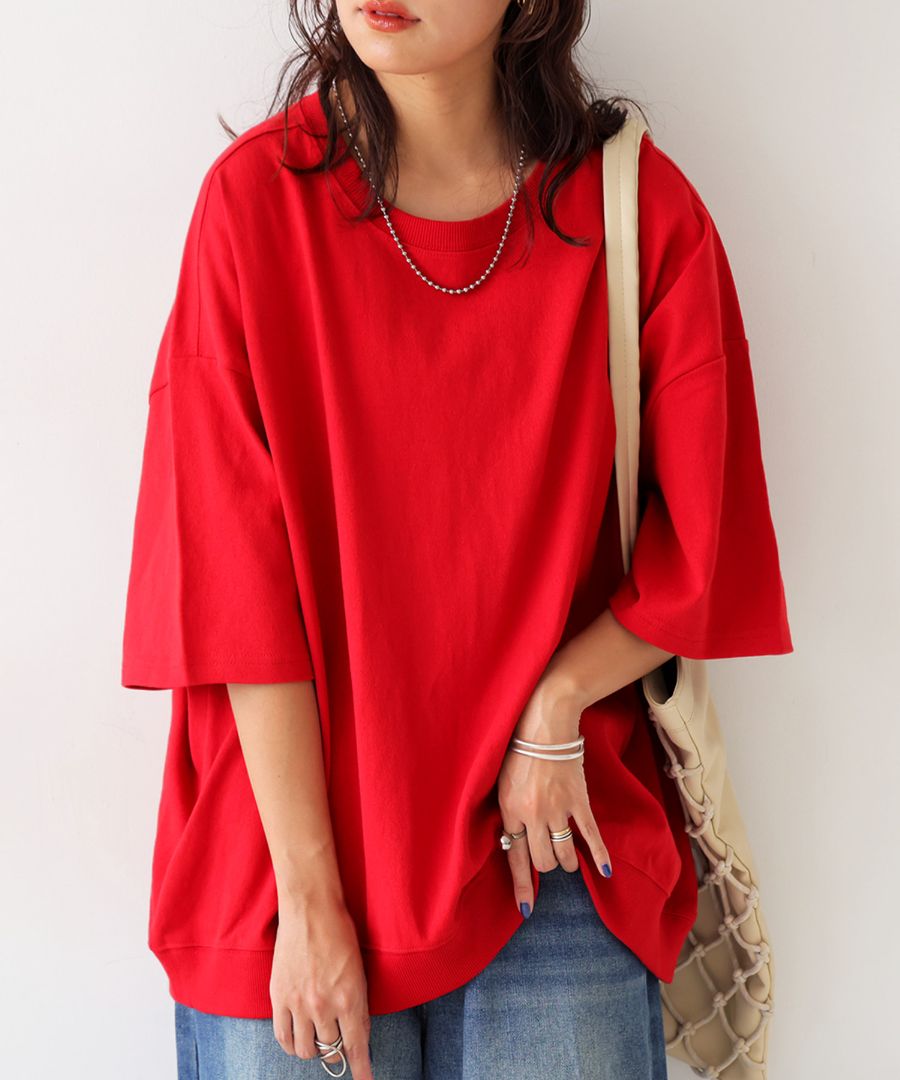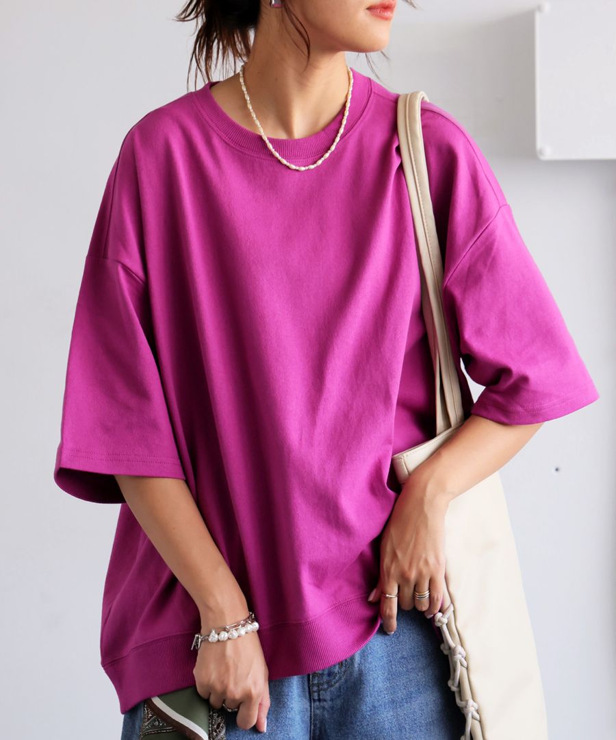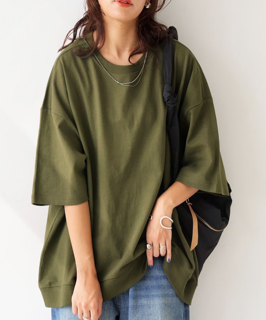 ドロップショルダーでリラックス感がありながらも、裾のリブ切替えでふんわりと立体感をつけ、どこから見てもバランスよく仕上げてくれます。