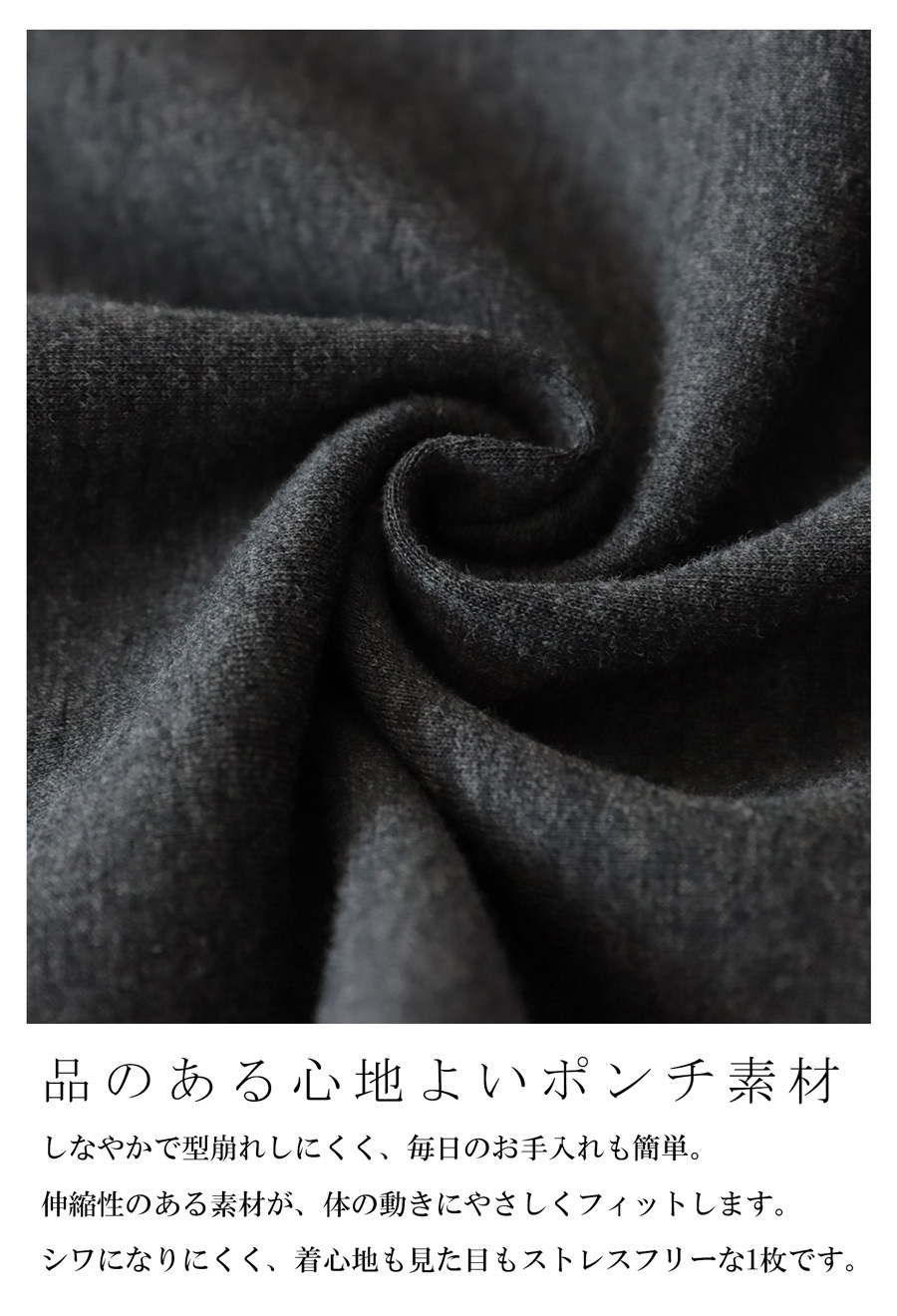 柄は無地、伸縮性のあるほどよい厚みの生地が動きに沿う形状でストレスフリー。