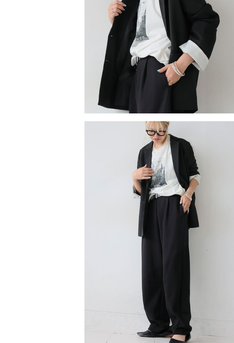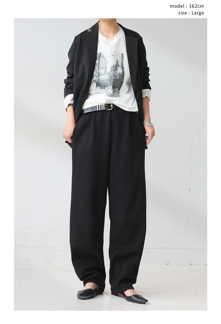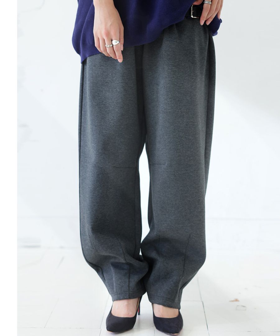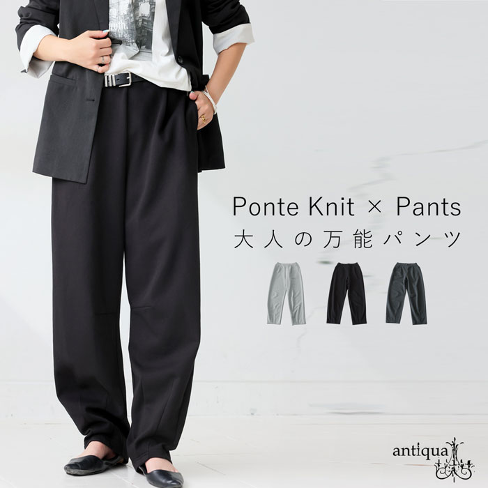 前タックがつくる端正なラインで、ラクにきれい見えする綿混ポンチ素材のパンツです。