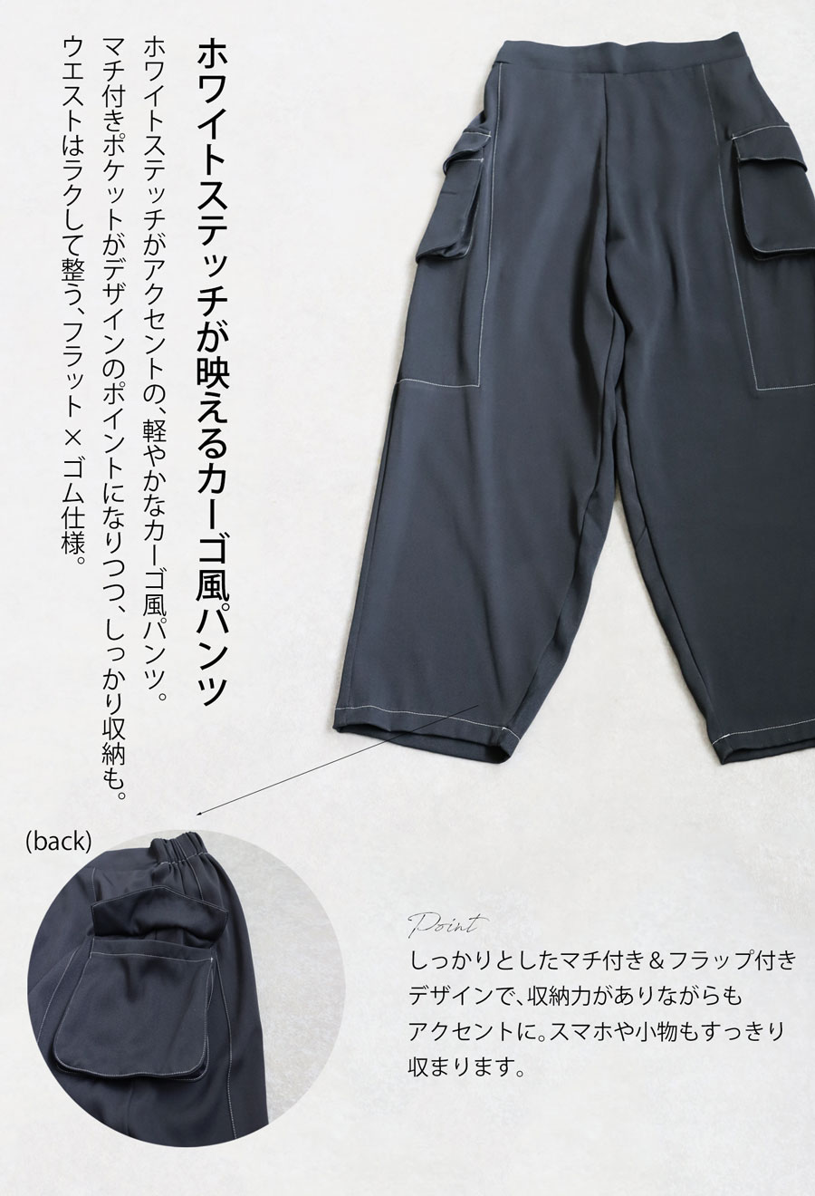 頼れる快適さとデザイン性を両立させた、ホワイトステッチが印象的なカーゴパンツが登場しました。
