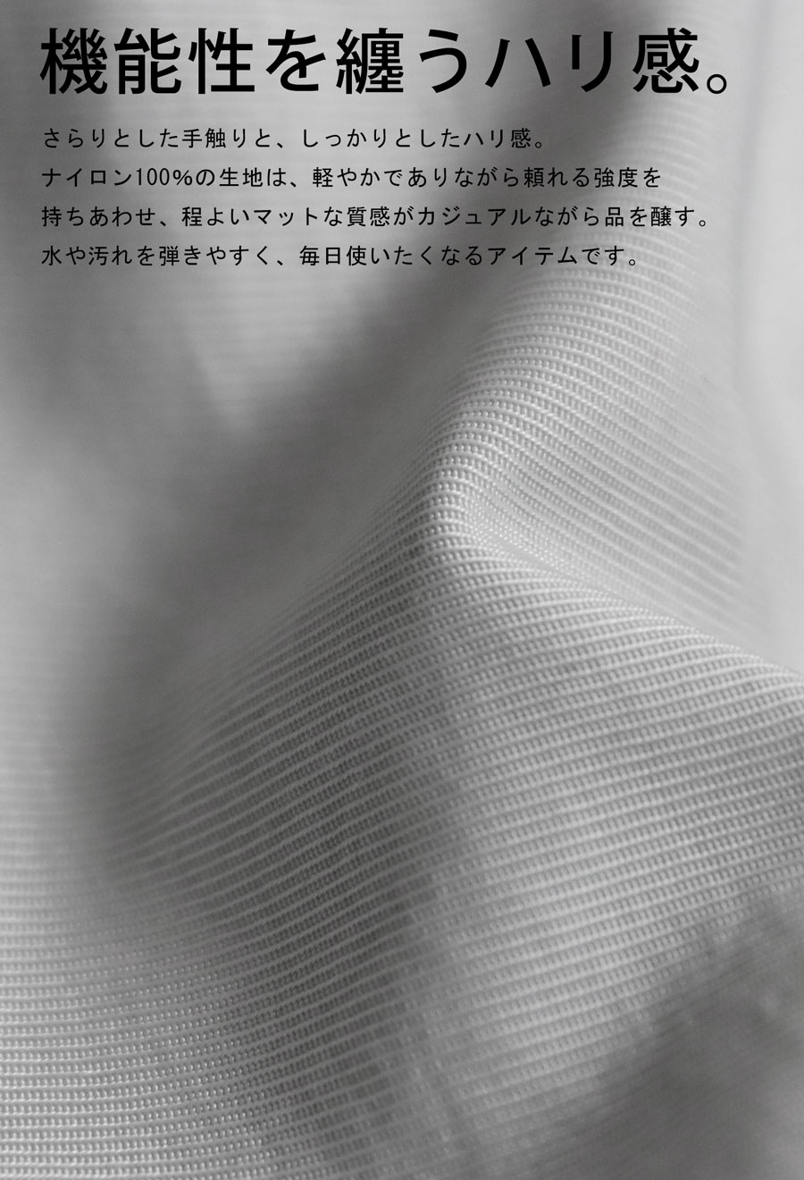 素材にはナイロン100%の生地を使用し、軽さと耐久性を兼ね備えた実用性の高さも魅力。