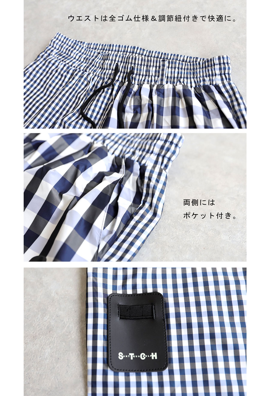 ・ウエストに全ゴム仕様&調整紐付き。