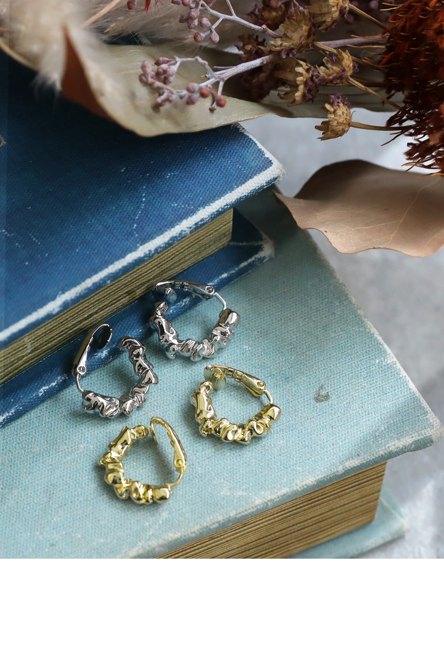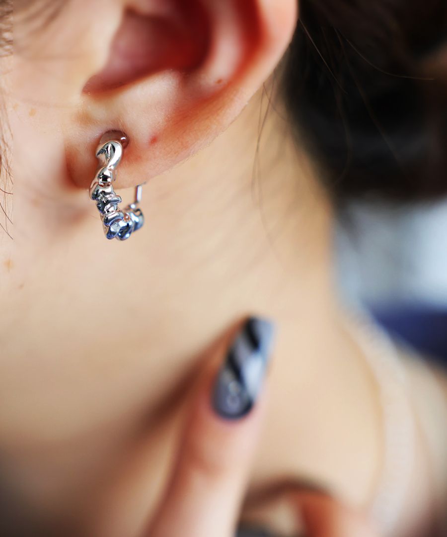 程よいボリューム感とねじれの効いた立体的なフォルムが、装いにほどよいアクセントを加えてくれます。