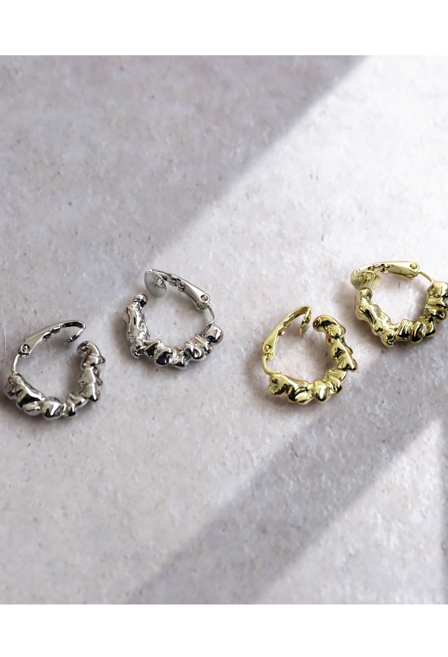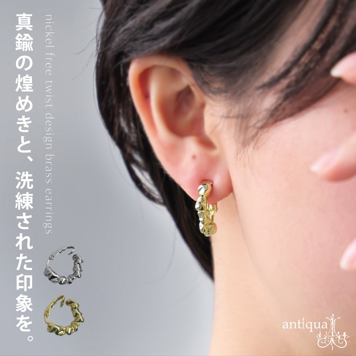 耳元にさりげない輝きを添える、真鍮素材のツイストイヤリング。