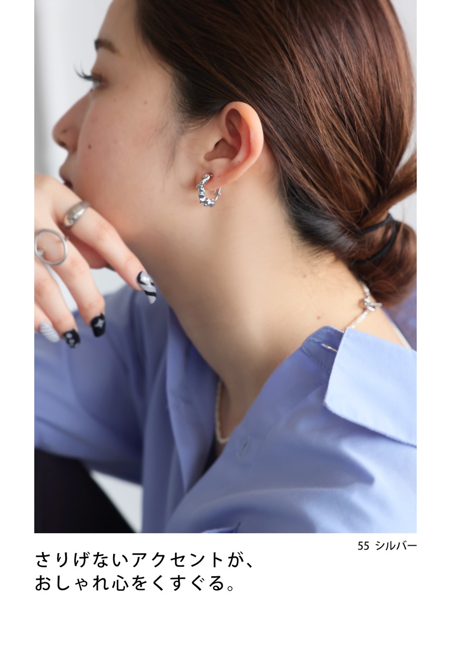 ピアスホールがない方にも対応するクリップ式で、着脱も簡単。