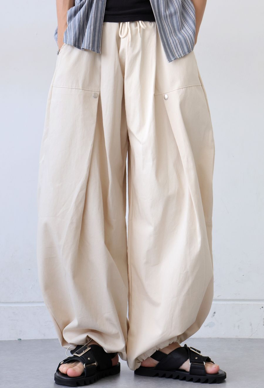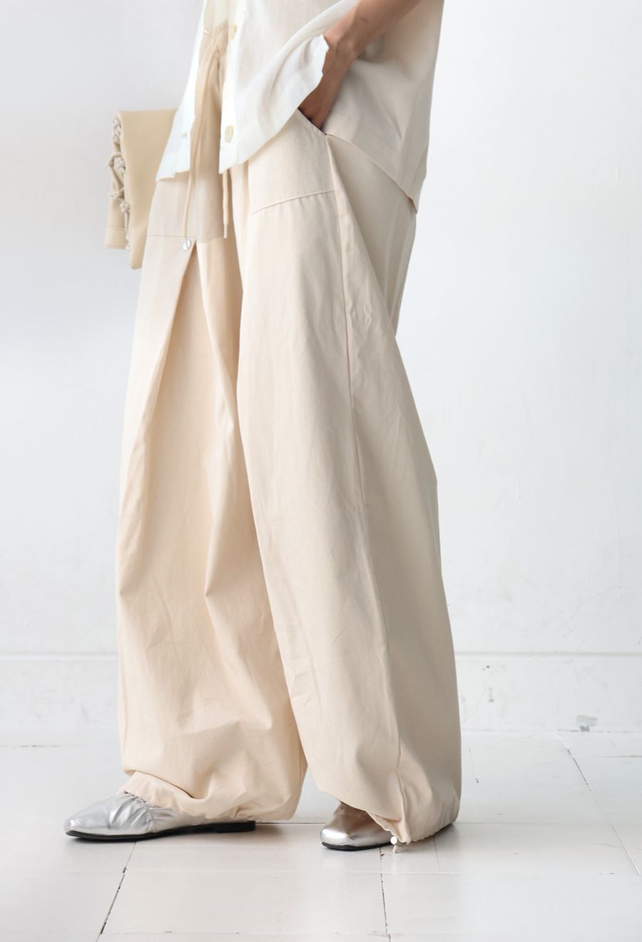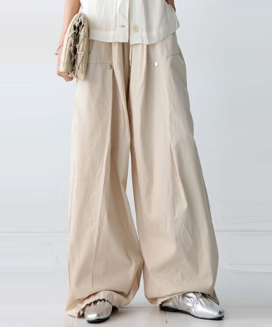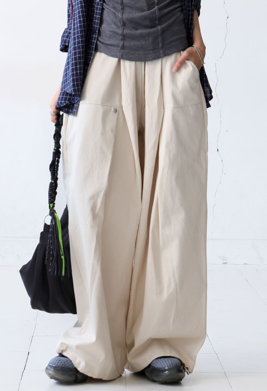 ナチュラルな表情が魅力の裾ドロストデザインタックサーカスパンツ。
