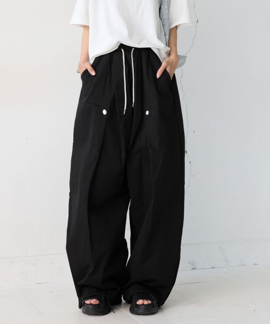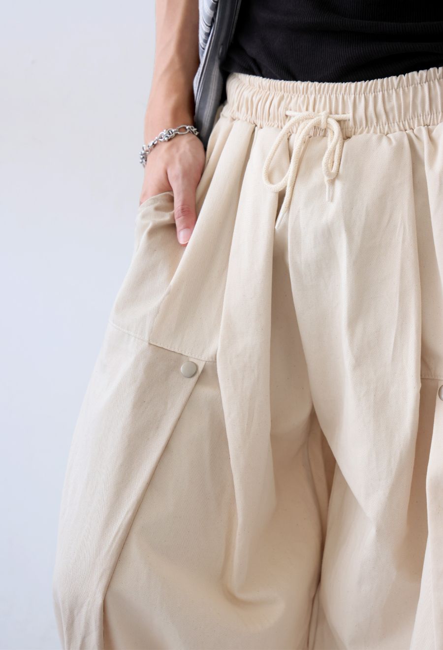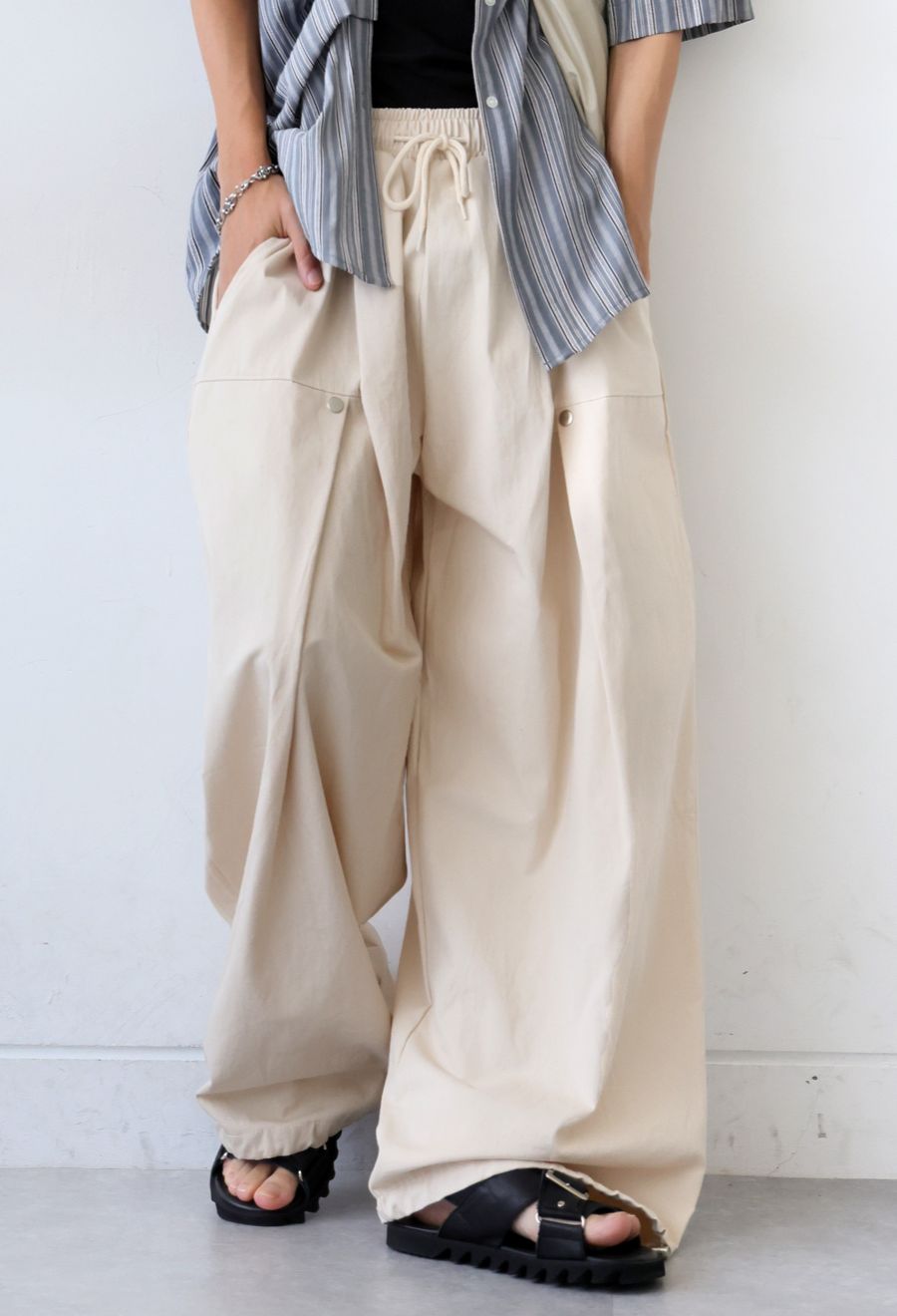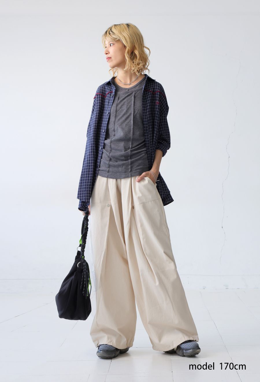 ナチュラルな表情が魅力の裾ドロストデザインタックサーカスパンツ。