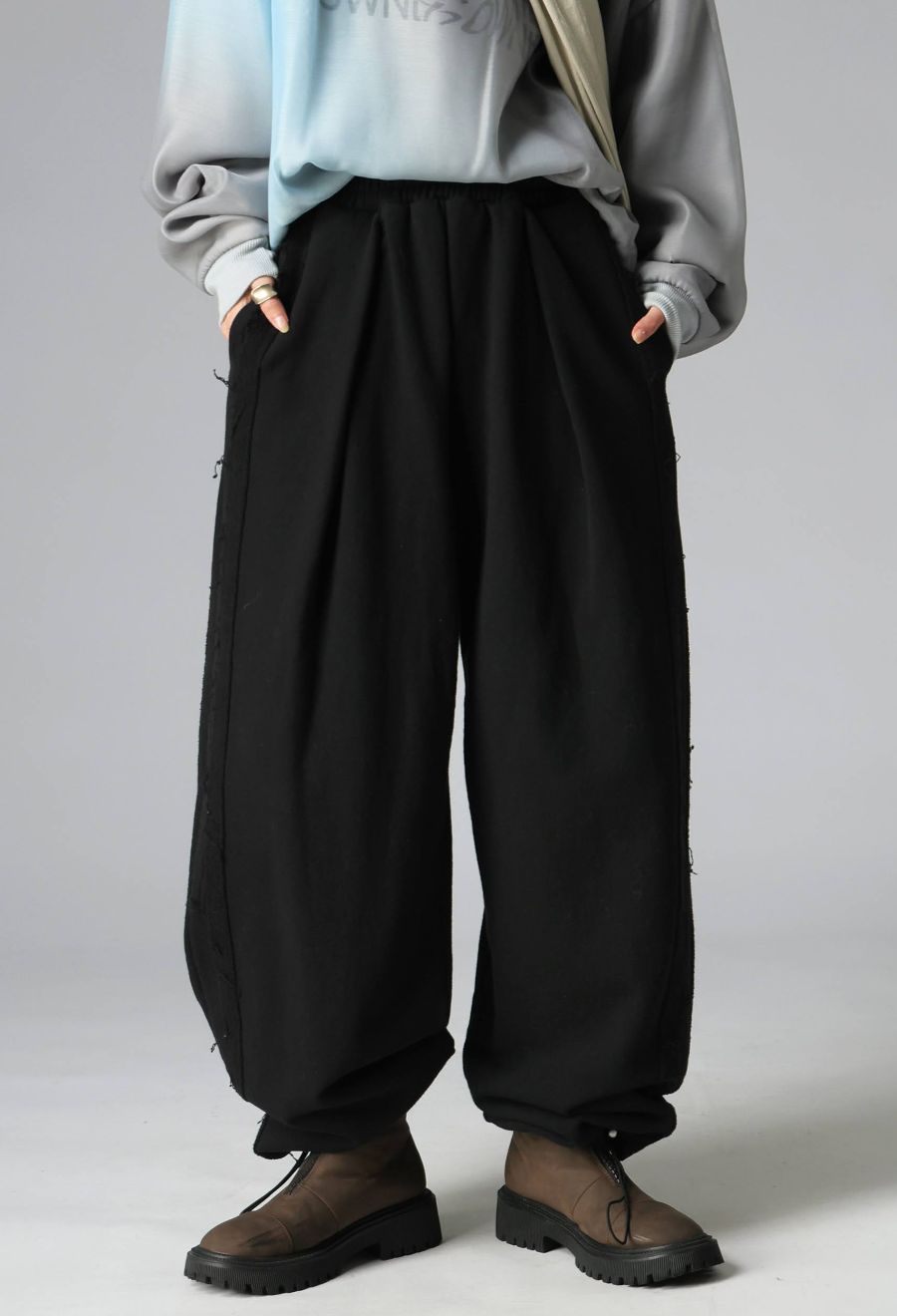綿(コットン)100%の柔らかな裏毛素材で、ロングシーズン快適に着用できるリラックスパンツ。