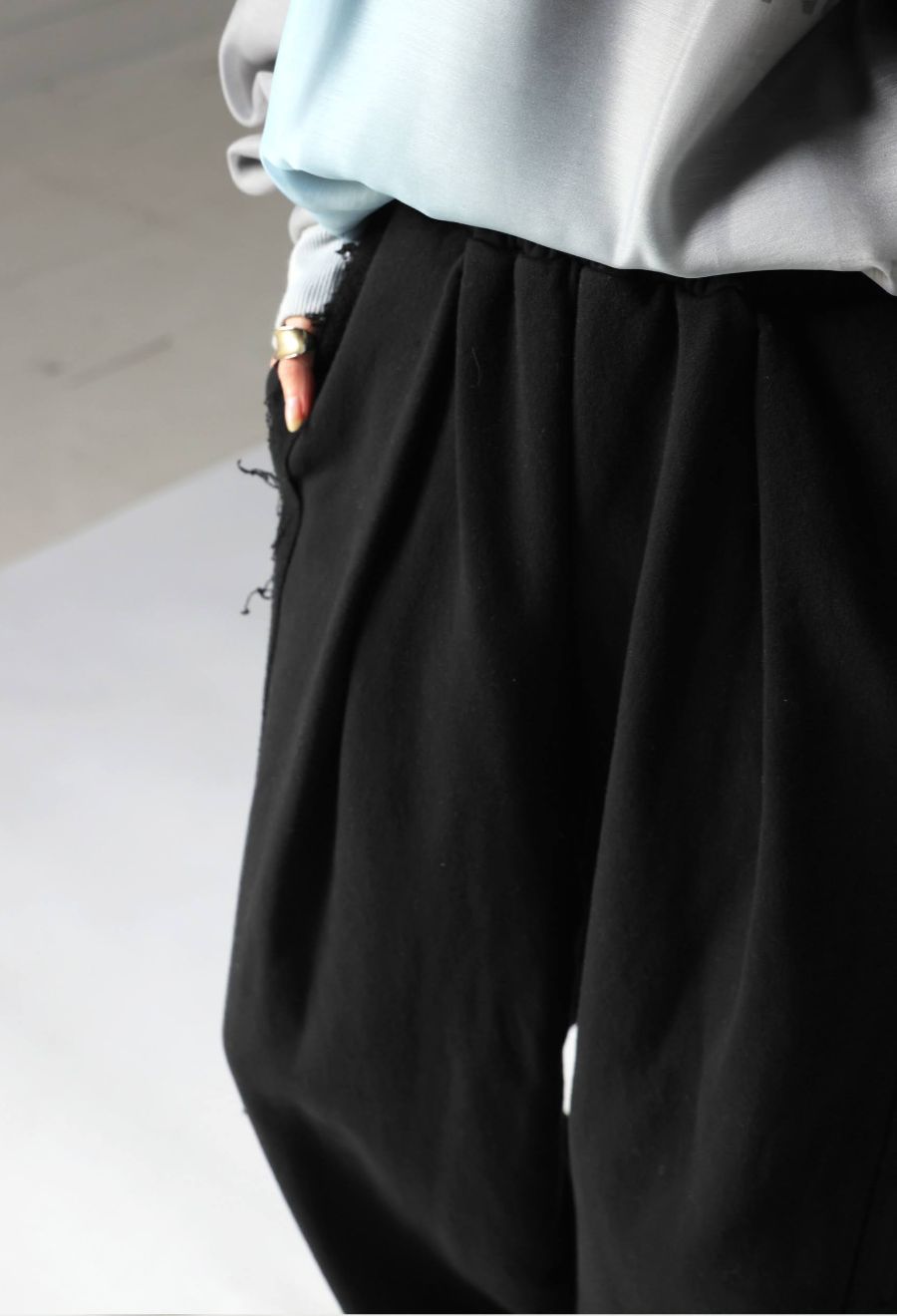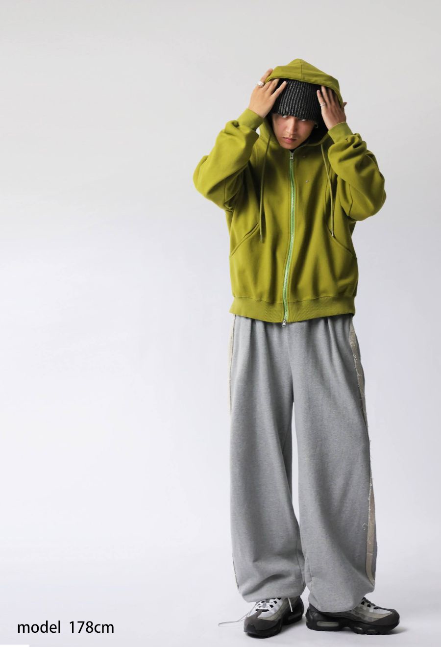 裾にはドロスト機能が付き、絞ることでシルエットの変化が楽しめる仕様。