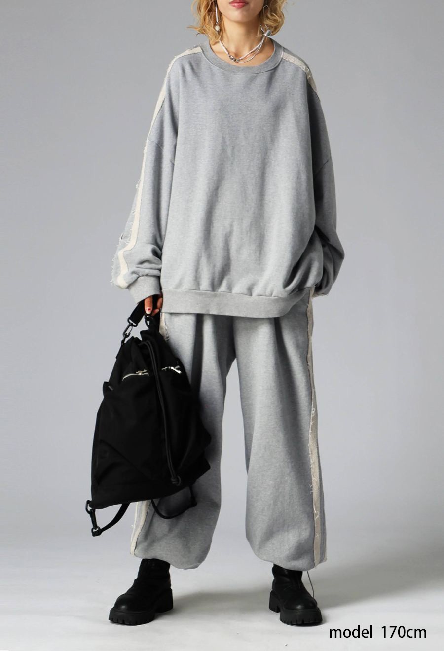 同素材トップス(品番:OWT-6046)とセットアップコーデも可能。
