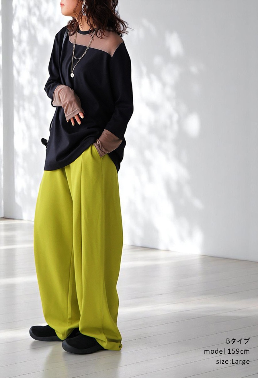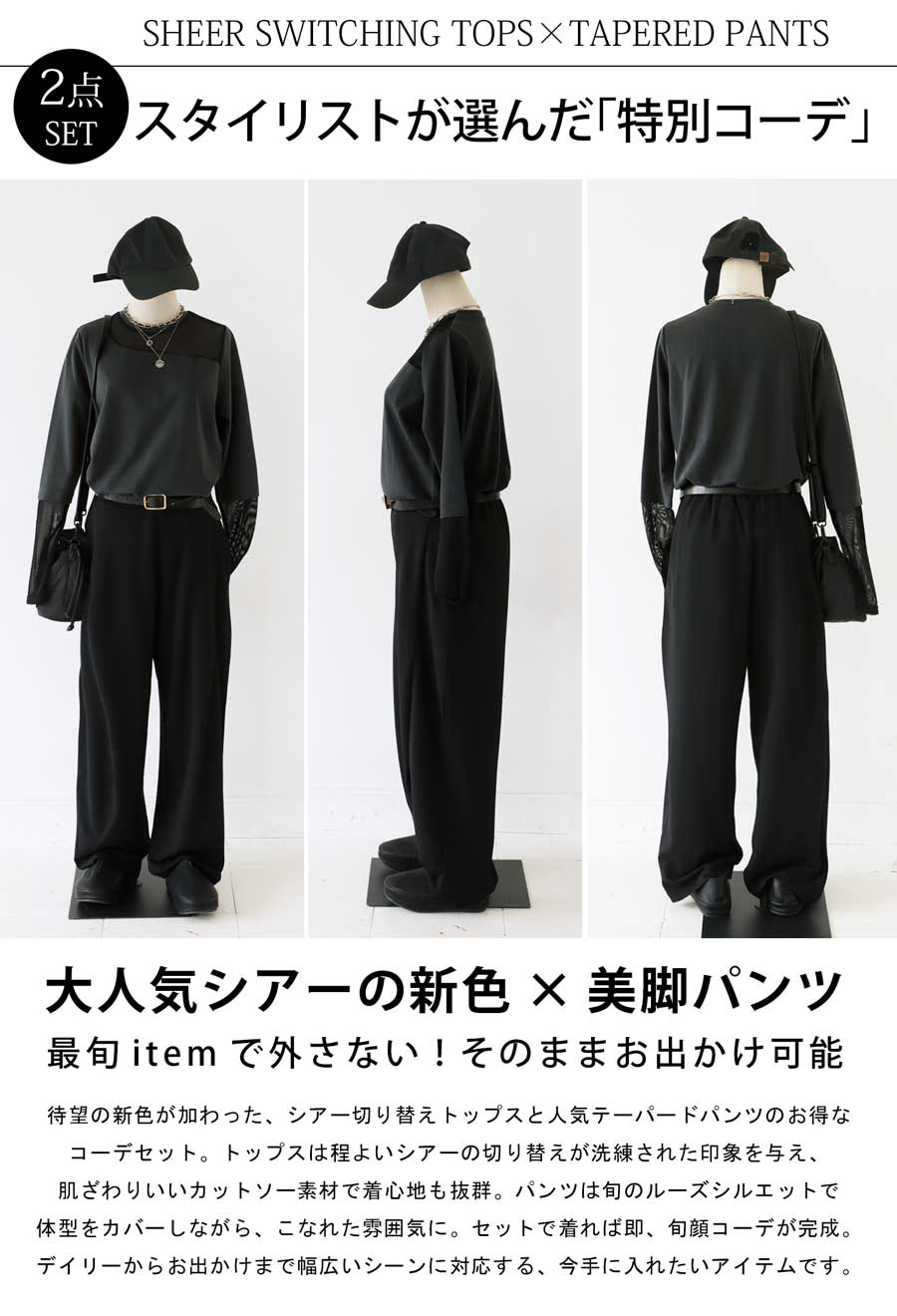 \洒落見えが叶う、旬のシアーデザイン×楽ちんパンツの2点SET/