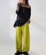 旬のルーズテーパードシルエットが美脚ラインを演出し、カジュアルからお出かけシーンまで幅広く対応可能。