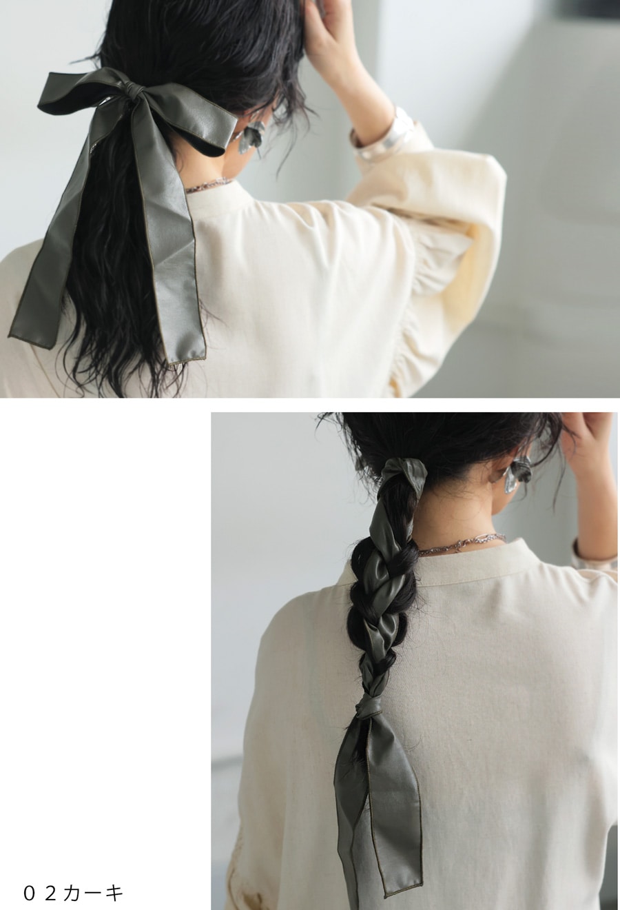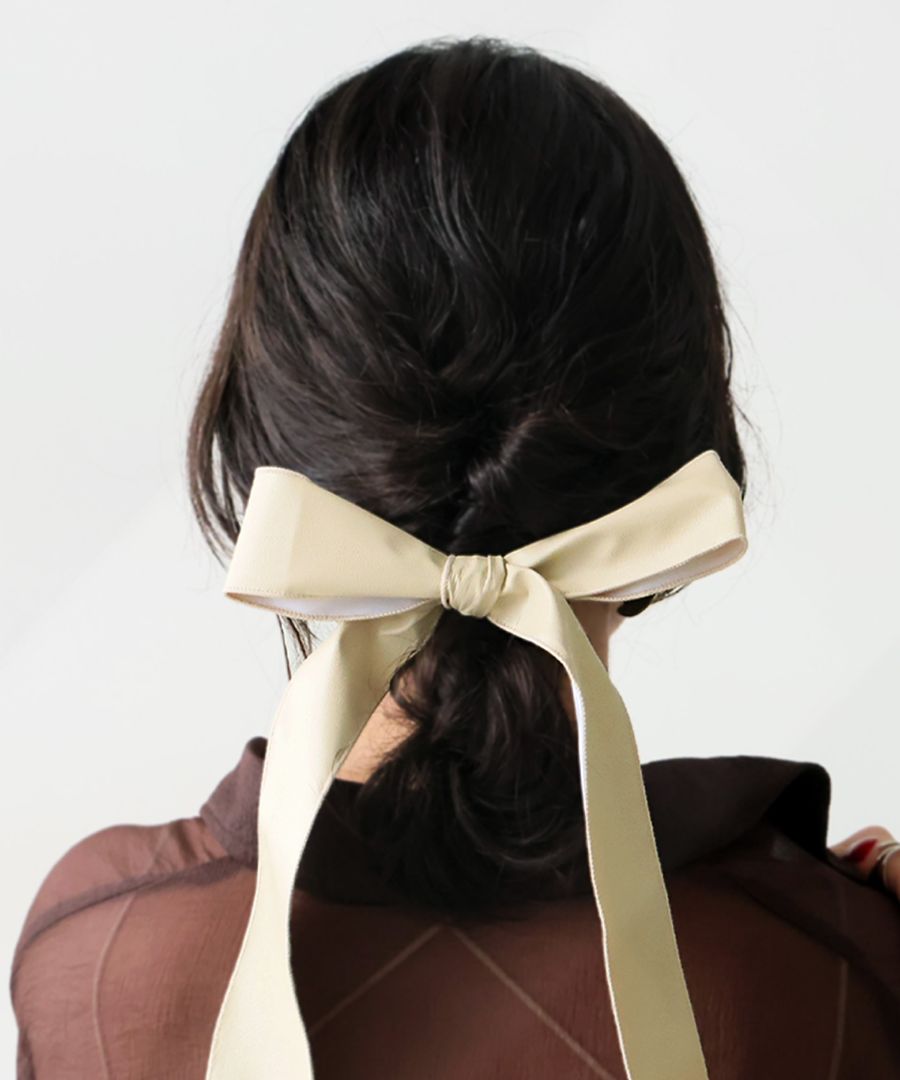 落ち着いた光沢をまとったリボン素材は、さっと結ぶだけで高見えする大人のヘアスタイルを叶えてくれます。